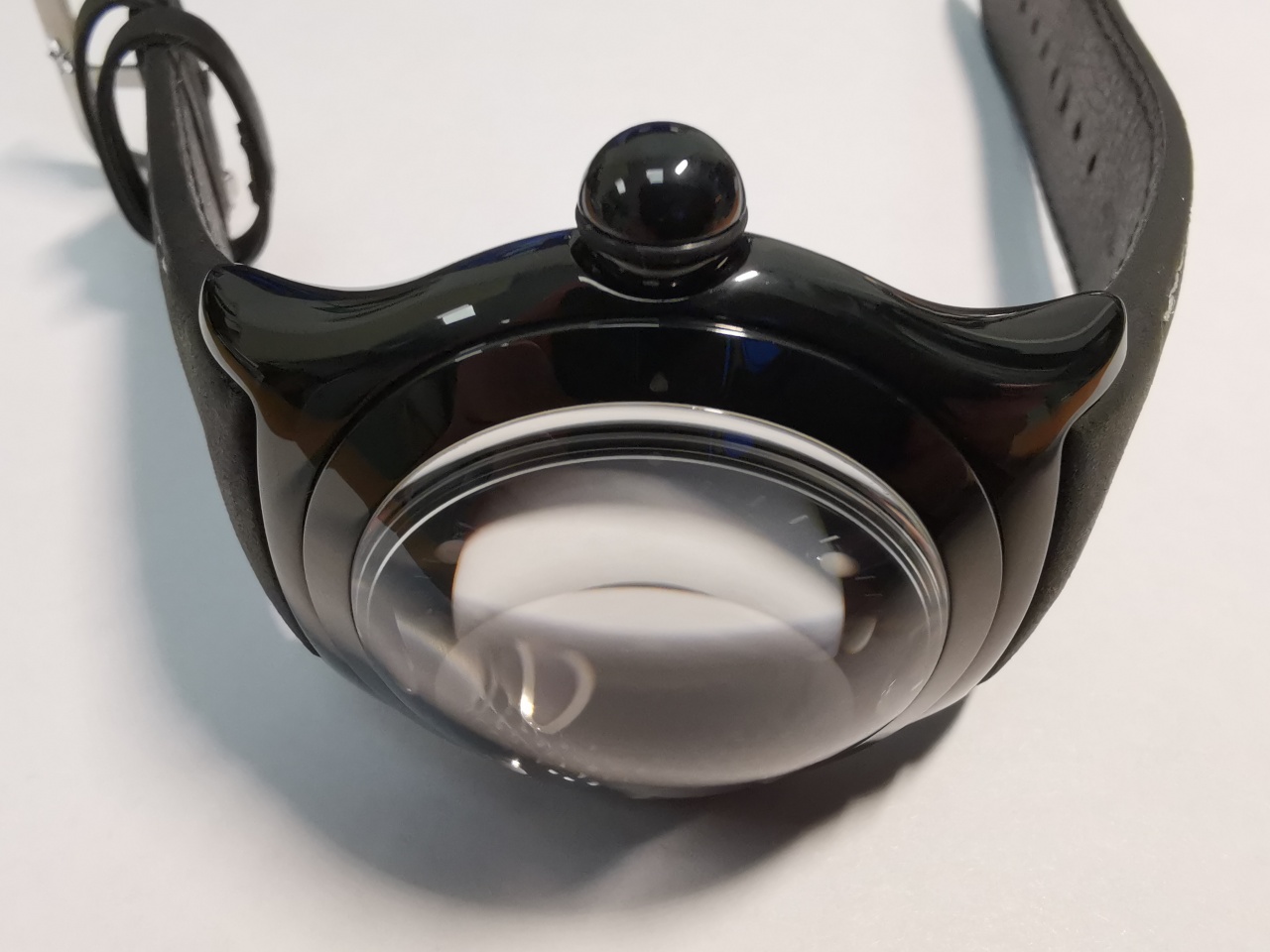 Пользоваться этими часами для контроля времени, ещё нужно приноровиться. Стекло-лупа, позволяет рассмотреть 80% площади циферблата только фронтально сверху. Отклонение на 45 градусов уже не позволяет рассмотреть на циферлате не только часовые метки, но и стрелки.