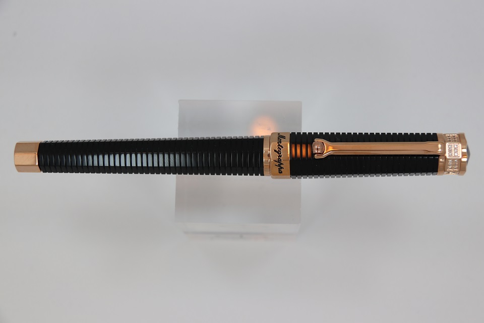 Сдержанный лаконичный дизайн инструмента выполнен в традиционной для моделей Nero Uno восьмигранной форме. Основной материал корпуса, акриловая смола глубокого чёрного цвета дополнен позолотой. Верхняя часть инструмента так же украшена ювелирными кристаллами Сваровски, выложенными по всей окружности ручки. В центре колпачка на ободе выгравирован логотип компании Монтеграппа.