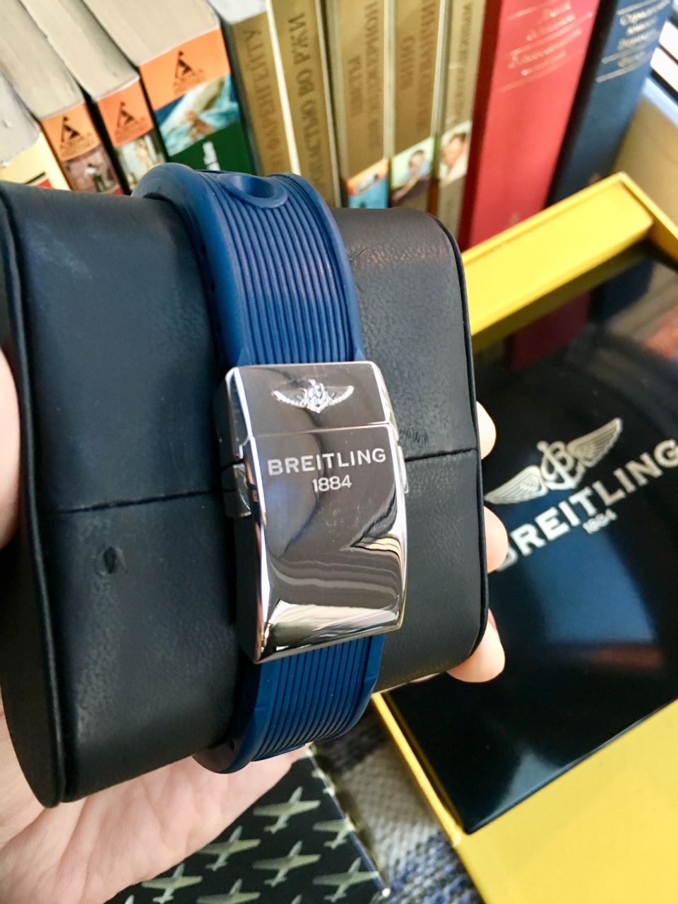 Эти часы для дайверов, сохраняющие водонепроницаемость на глубине до 200 м, напоминают о функциональном и элегантном дизайне легендарной модели 1950-х годов. Корпус - нержавеющая сталь 316L. Механизм - Breitling 17 - механический с модулем автоподзавода, 28800 полуколебаний/час, 25 камней, сертифицированный хронометр C.O.S.C., запас хода до 40 часов. Сапфировое стекло с двойным антибликовым покрытием. Водозащита - 200 м. Ремень - синий каучук на клипсе. Диаметр корпуса 46 мм.
