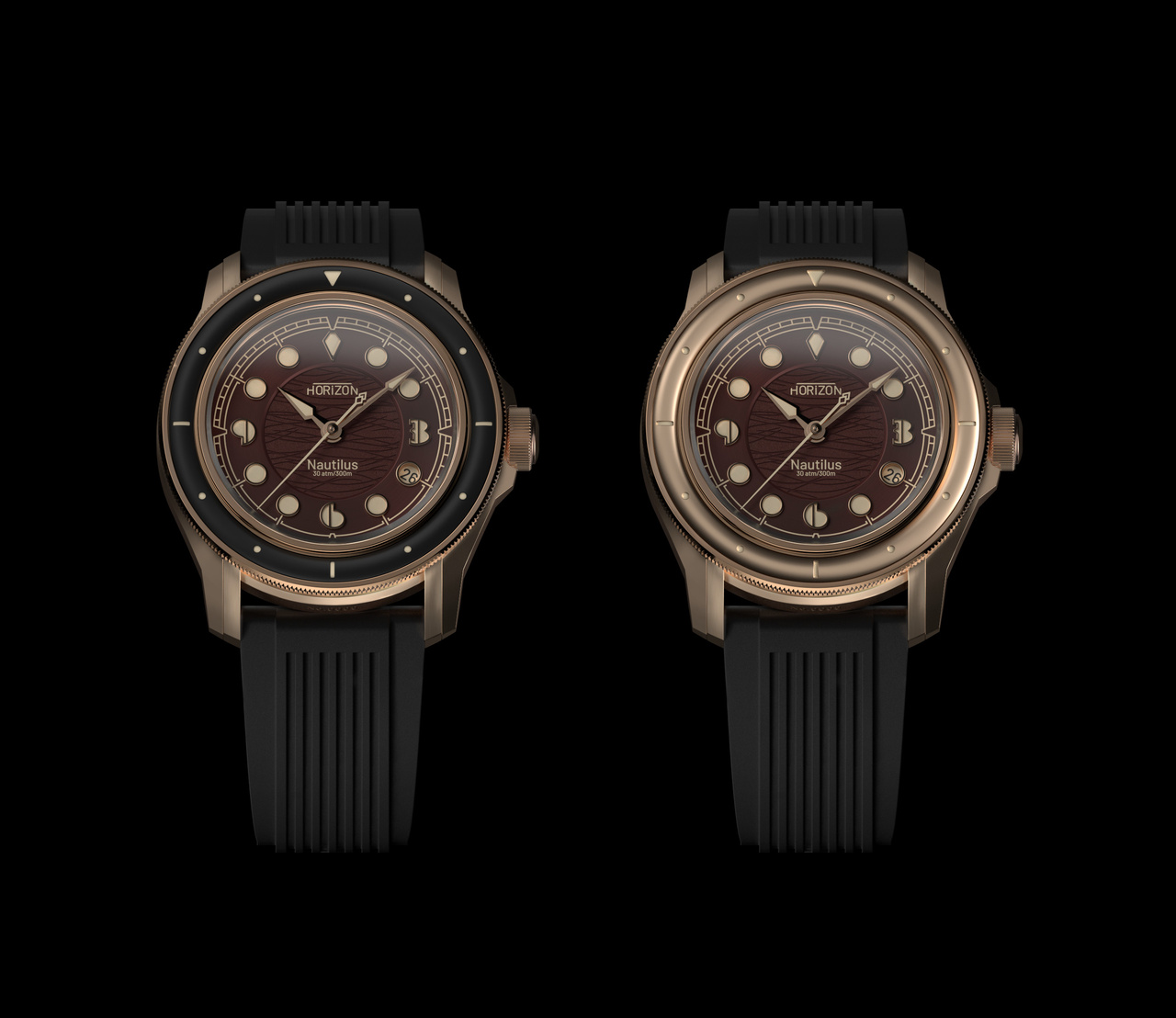 Всего создано 4 модели часов, 2 в стали и 2 в бронзе . Варианты циферблатов отличаются центральной частью , в стали она шероховатая а в бронзе имеет узор (3D рендеры).