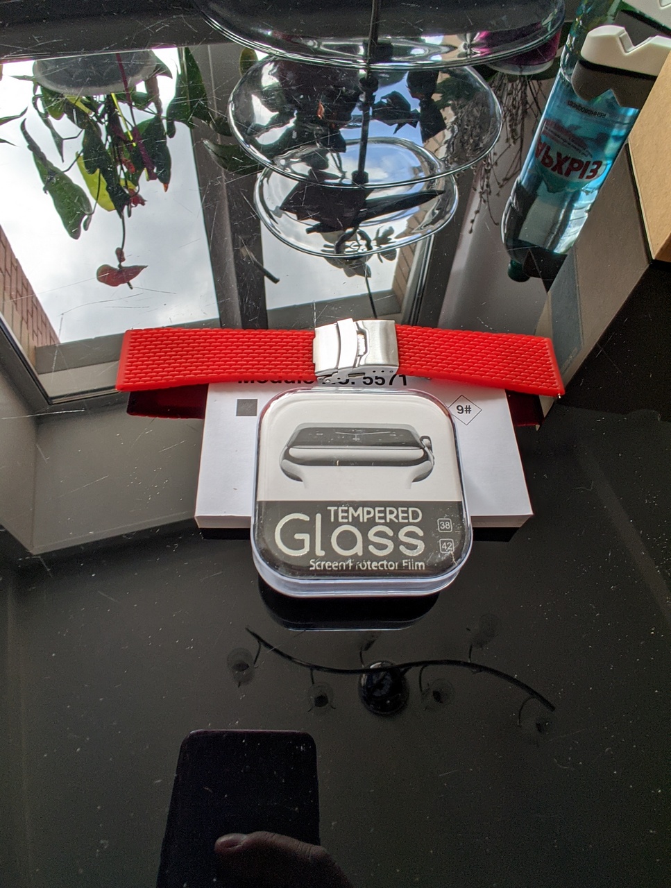 Наклеено защитное стекло, в подарок отдам еще одно стекло и отличный ремешок. Все документы, чек, гарантия есть.