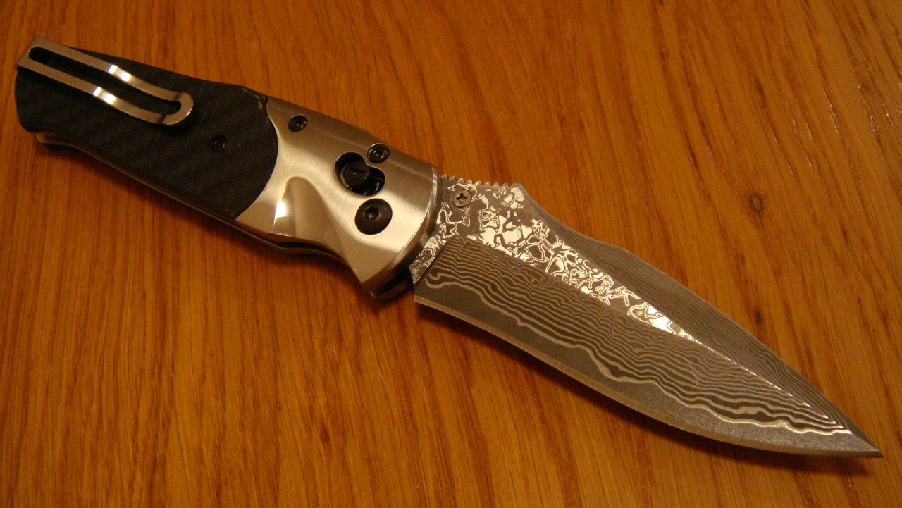 Клинок - VG-10 core surrounded by 15 layers of nickel and stainless steel, рукоять - титан (лайнеры, больстеры и бэкспейсер) и карбон (нескользящие накладки), замок - фирменный Arc-Lock.