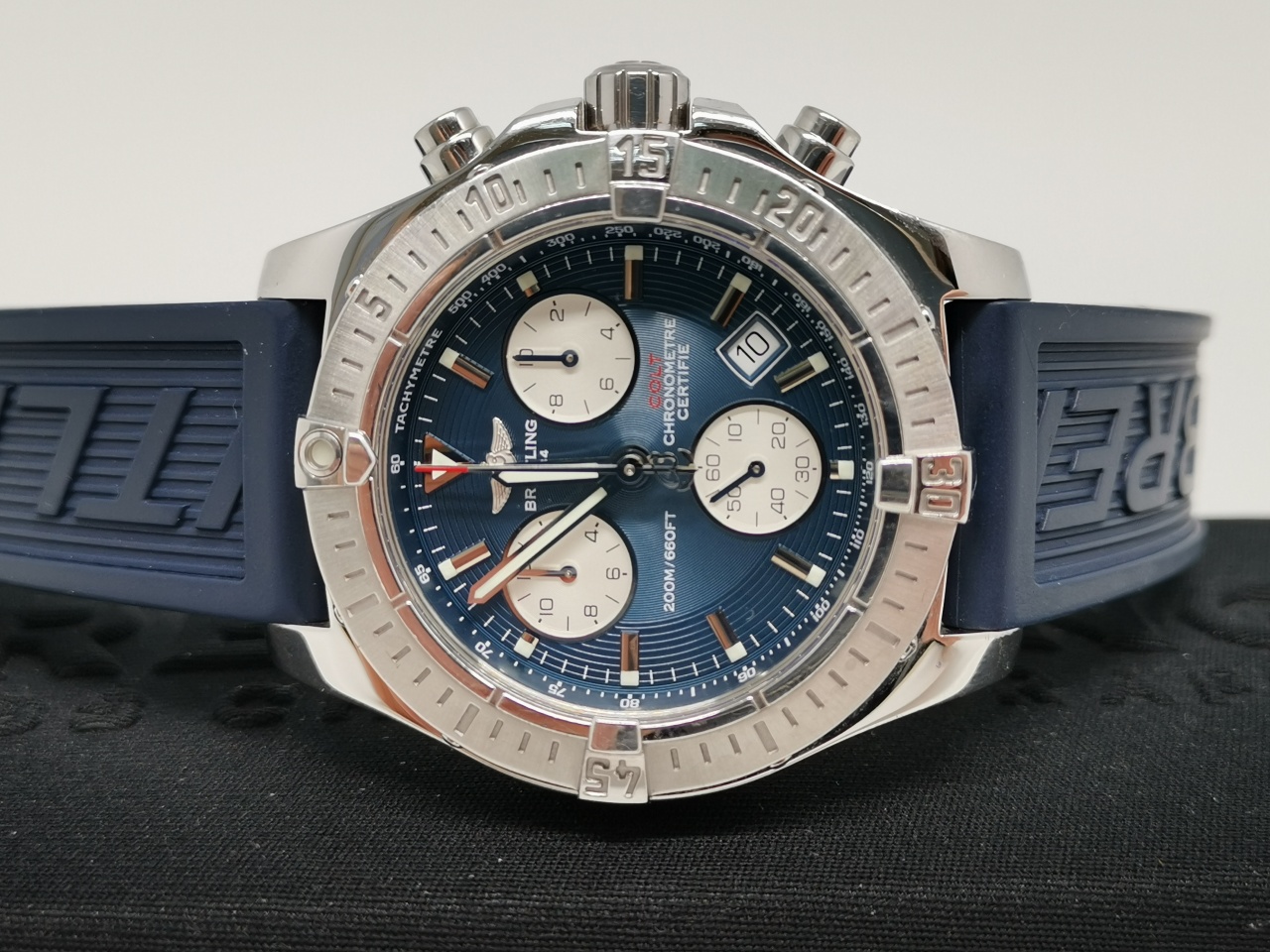 Breitling Colt II 41 mm, кварц, хронограф, синий циферблат, каучук