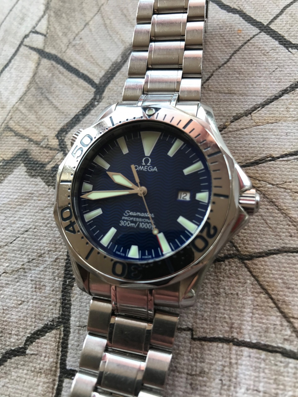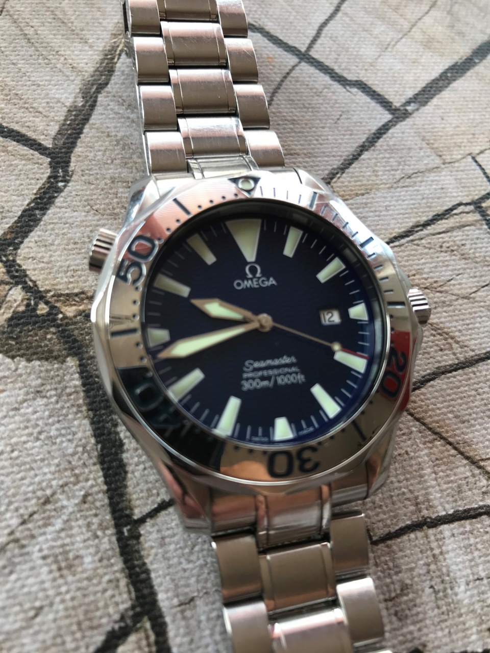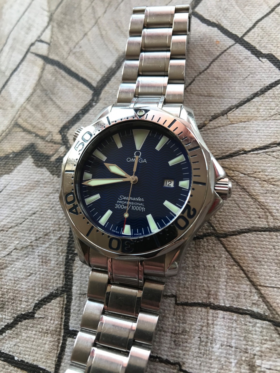В продаже Omega - Seamaster 300M Quartz Electric Blue часы на каждый день (под любой стиль одежды). В комплекте только часы. Присутствуют легкие следы эксплуатации на безеле и браслете. Легкая полировка и часы как новые! Установлен новый элемент питания в OMEGA сервисе.