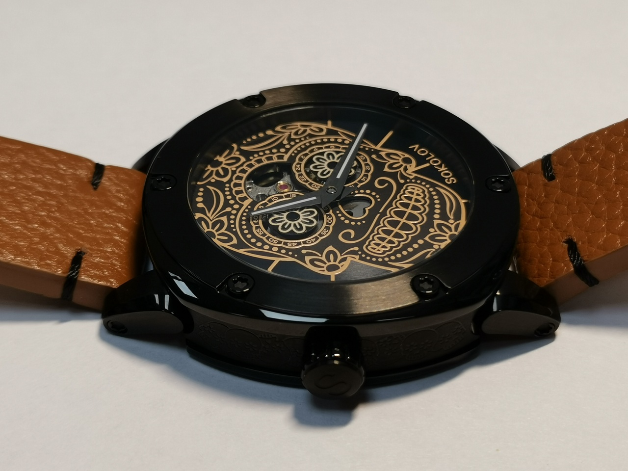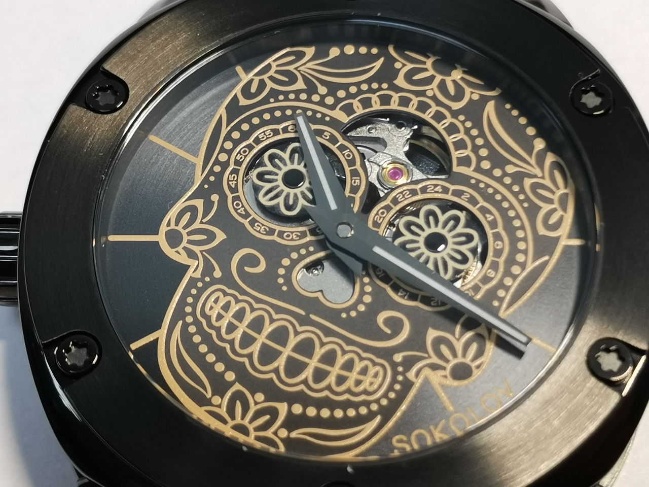 Часы российского фэшн бренда Sokolov из коллекции Feel the Power достаточно давно привлекли моё внимание. Именно тогда у меня появилась идея приобретения часов с черепом на циферблате. Сразу приобретать эту модель я не спешил, захотелось разобраться в теме. Вообще часов с черепами в оформлении немало, у одной только Инвикты имеется не меньше десятка моделей. Дорогой сегмент вроде Corum я не рассматривал, хотя и ему есть альтернатива у Reef Tiger. Задача была найти возможные варианты часов выдержанных в тематике латиноамериканского праздника Dia de los Muertos - День Мертвых, отмечаемого 2 ноября. Из всех пересмотренных вариантов мне понравились два кандидата, - от Sokolov и Timex. По стоимости они находятся примерно в одной ценовой категории, но предпочтение я отдал российскому бренду, так как во первых дизайн понравился в большей степени и технические характеристики значительно лучше чем у конкурента от Timex. Так модель от Sokolov выполнена на механизме Miyota 82s7 и имеет открытый баланс, привлекающий внимание к циферблату, - модель от Timex выполнена на кварцевом механизме и имеет крышку хлопушку.