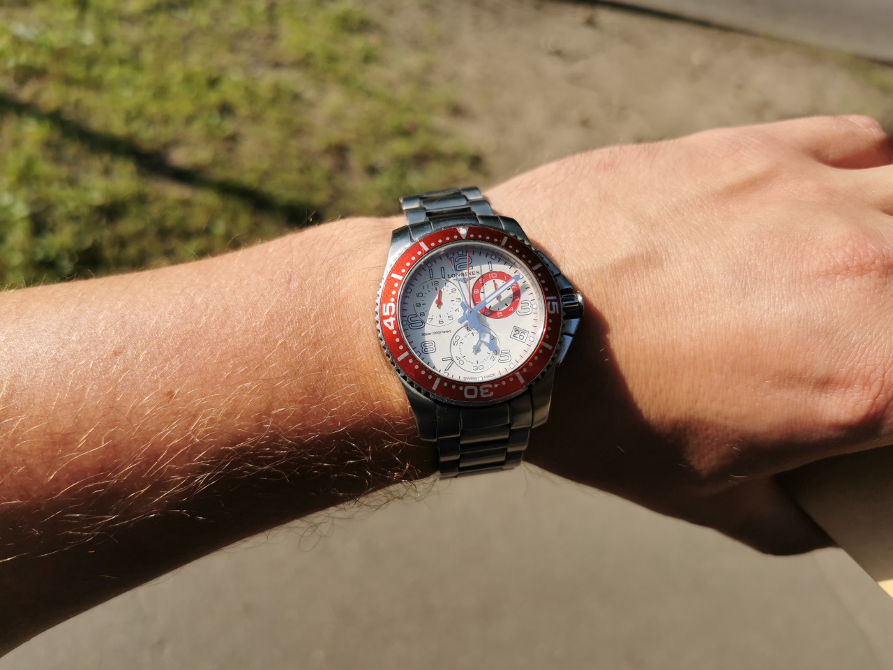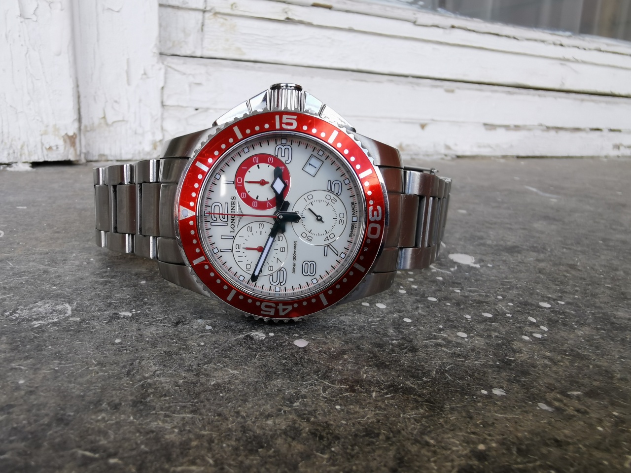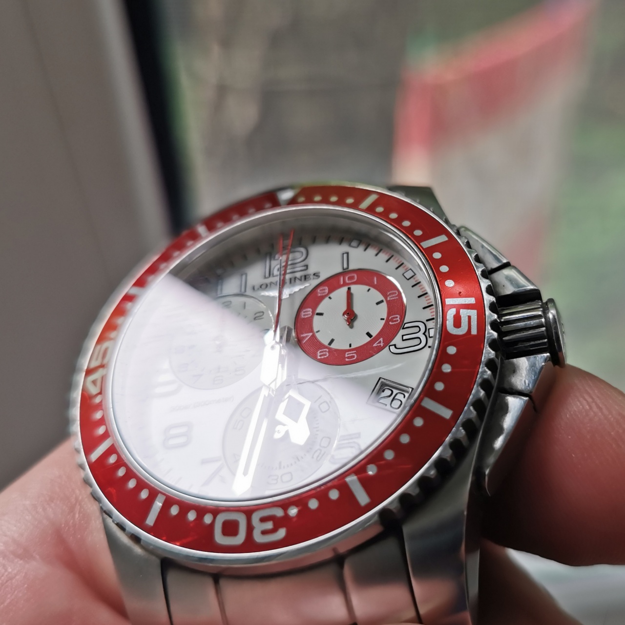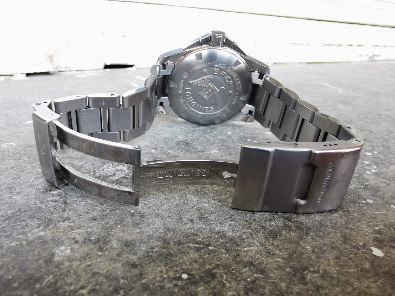 Предлагаю Вашему вниманию кварцевый гидроконквест в достаточно редком цвете. Часы обслужены, браслет полный. Есть незначительная потертость на стекле на внешний вид и на работу не влияет. ref: L3.690.4.19.6 Механизм: Кварцевый хронограф (механизн обслужен, стоит новая батарейка)
