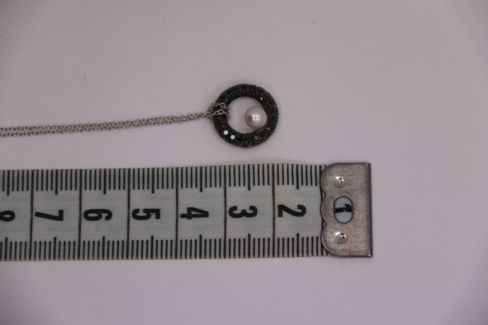 Неспешно продается новый женский золотой кулон / подвеска с черными бриллиантами и жемчужиной на золотой цепочке