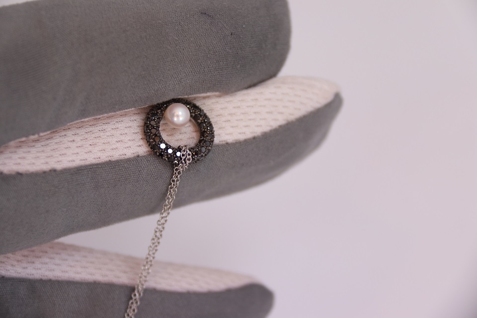 MiMi Milano 18k White Gold, Black Diamonds Pave & Pearl.