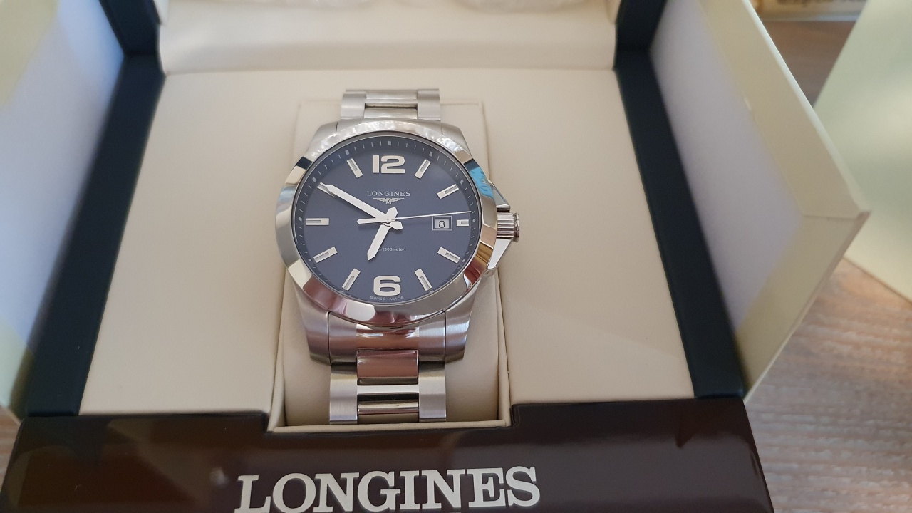 Продаю идеальные Longines conquest, кварцевые, синий цифер, 41мм!!! Куплены в марте в harold новыми, соответственно на гарантии ещё 2,5 года. Носили очень мало. Состояние поставил отличное, так как на безеле есть минимальные следы обычной носки. Никаких серьёзных царапин, сколов и т.д. нет. По фото всё видно. Часы в идеале! Один важный плюс моих часов - идеальное попадание секундной стрелки во ВСЕ метки, прямо по всему кругу. К сожалению, это огромная редкость, нашёл такой экземпляр среди множества других. Полный комплект, часы, коробка, документы, гарантия, все звенья браслета на месте.