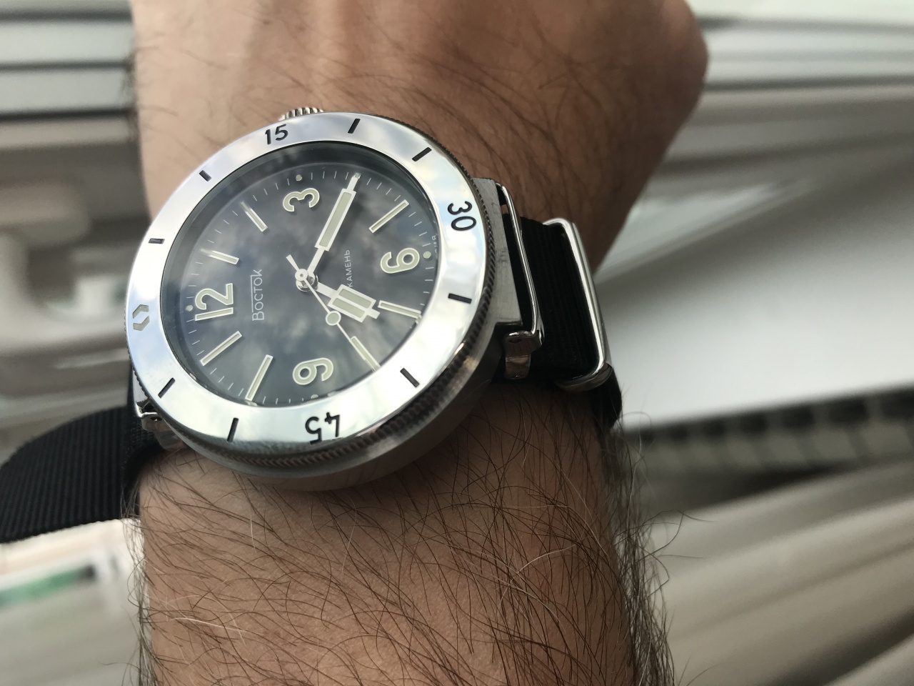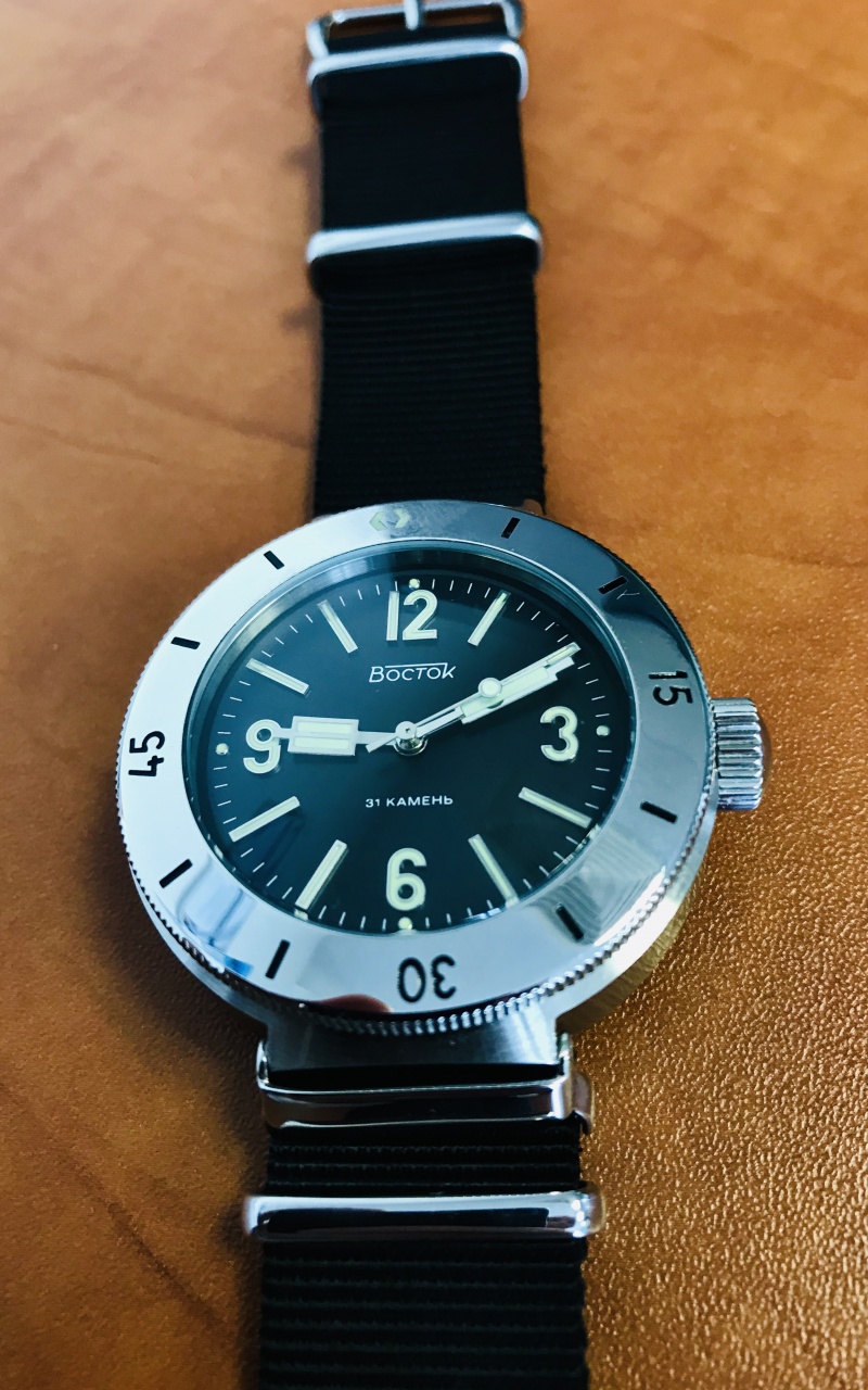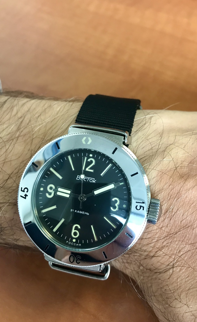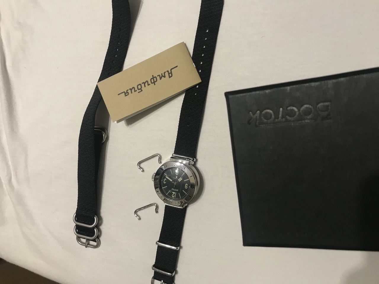 В комплекте двое сменных ушей 20 и 22 мм, и ремни НАТО под каждые уши.