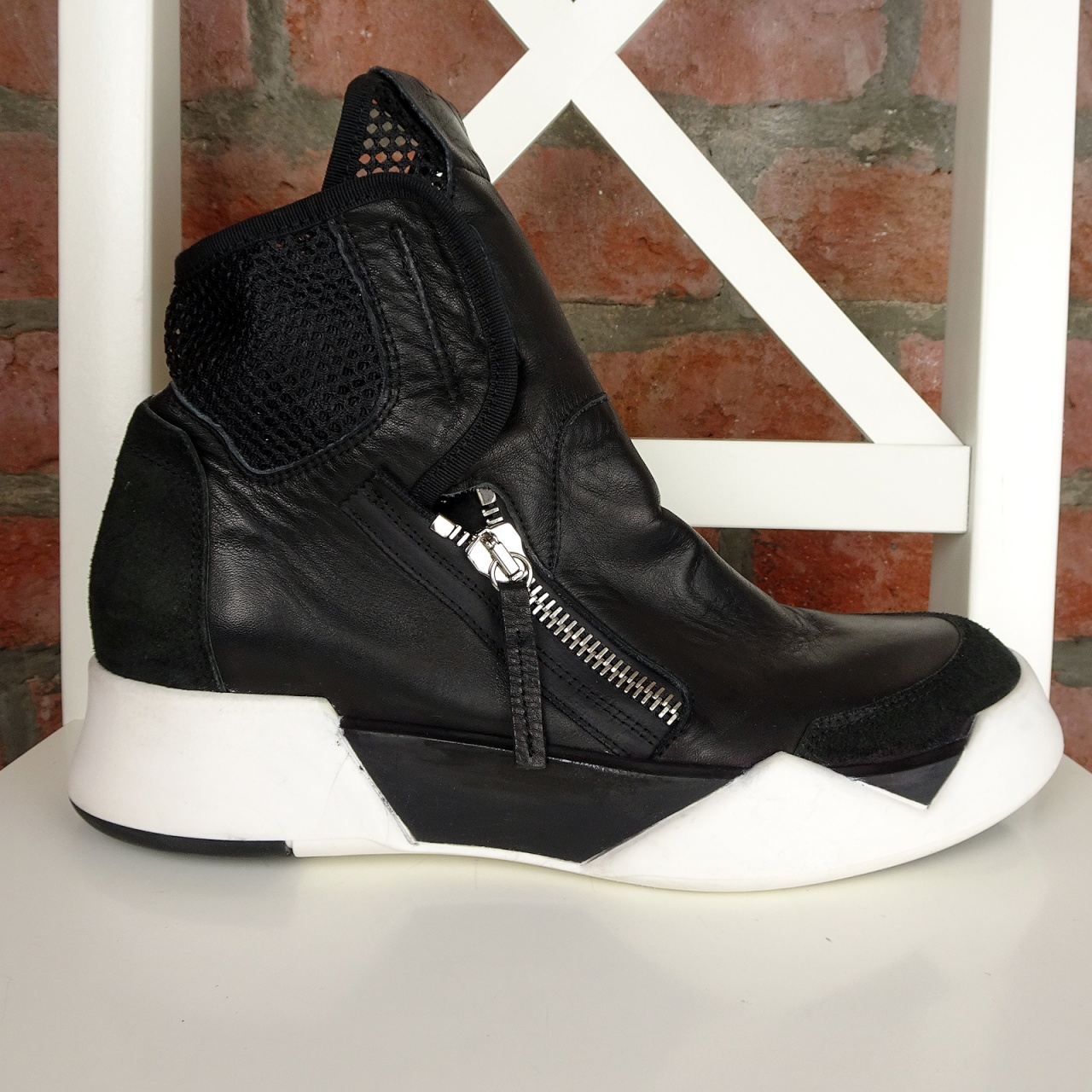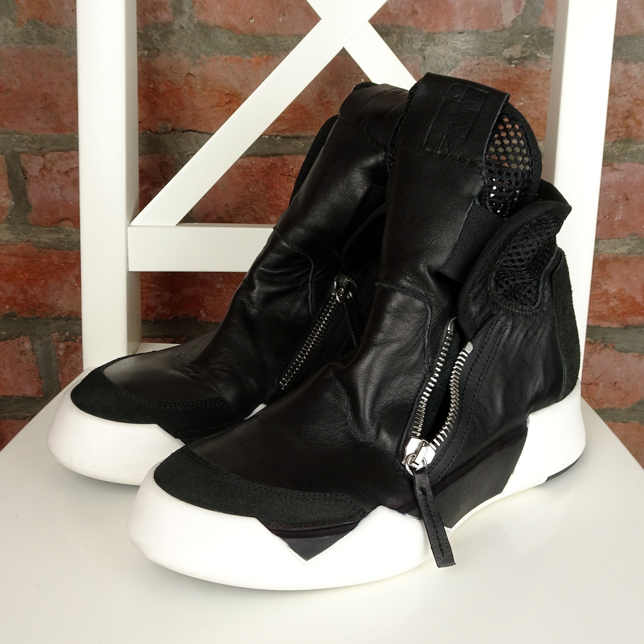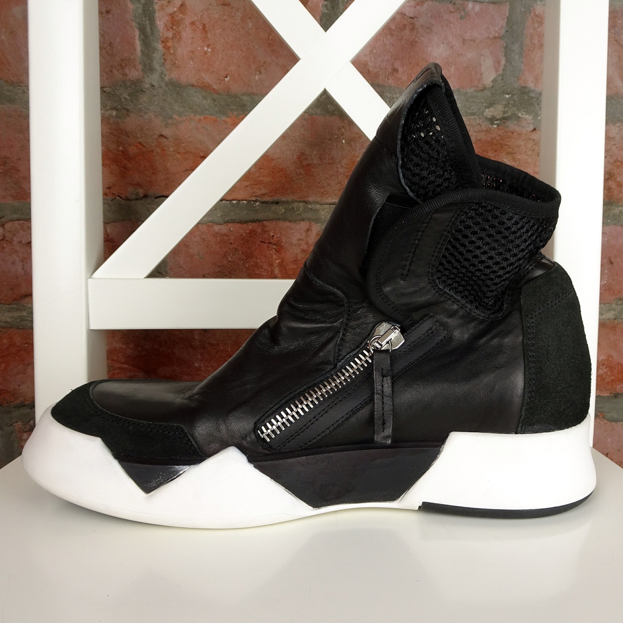 Знаменитое ультра-модное высоконтрастное сочетание черного верха с крупной геометричной черно-белой подошвой.