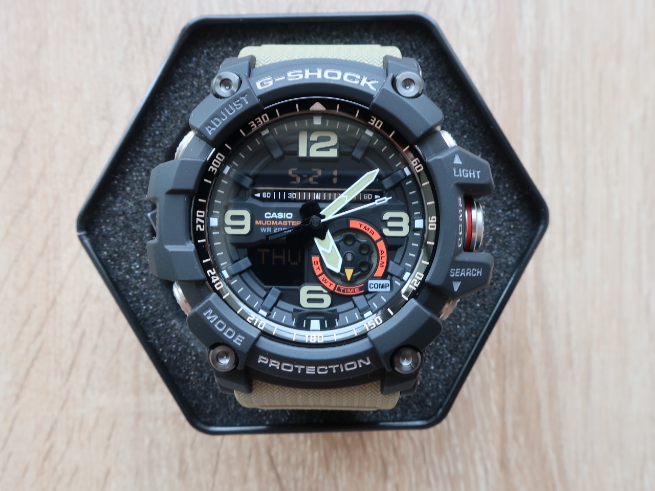 При создании этой модели были учтены экстремальные ситуации, с которыми сталкиваются владельцы часов в суровых условиях пустыни. Mudmaster. Противоударный корпус защищает механизм от ударов и вибрации. Защита от попадания внутрь пыли и грязи. Светодиодная автоматическая супер-подсветка. При движении руки дисплей освещается ярким светом. Светонакопительное покрытие необрит продолжает светиться в темноте даже после непродолжительного пребывания на свету. Индикатор низкого заряда батареи. Встроенный цифровой компас. Диапазон измерения от 0° до 359° с точностью 1°. Коррекция магнитного склонения. Встроенный датчик температуры от -10° до +60°С с точностью 0,1°C. Мировое время – 48 городов (31 часовой пояс), всемирное координированное время (UTC). Функция включения/отключения летнего времени. 12-ти и 24-х часовой формат времени. Секундомер с точностью показаний 1/100с и временем измерения 24ч. Сплит-хронограф. Таймер обратного отсчета от 1с до 1ч. Функция отключения/включения звука.