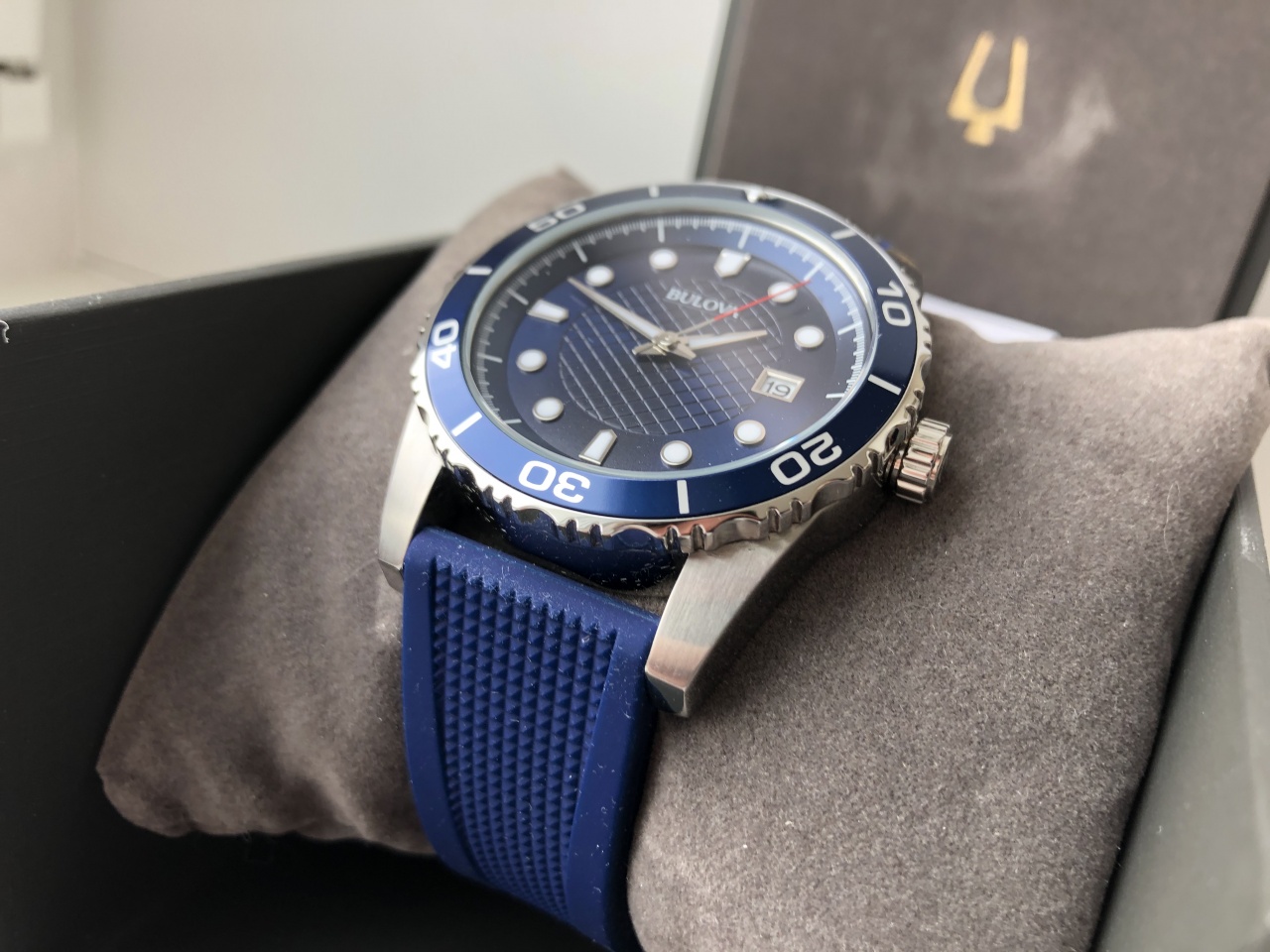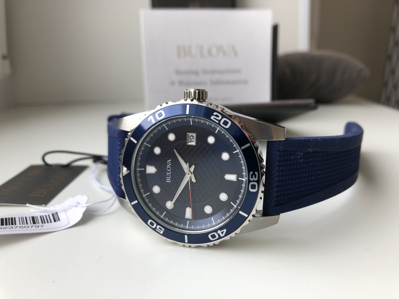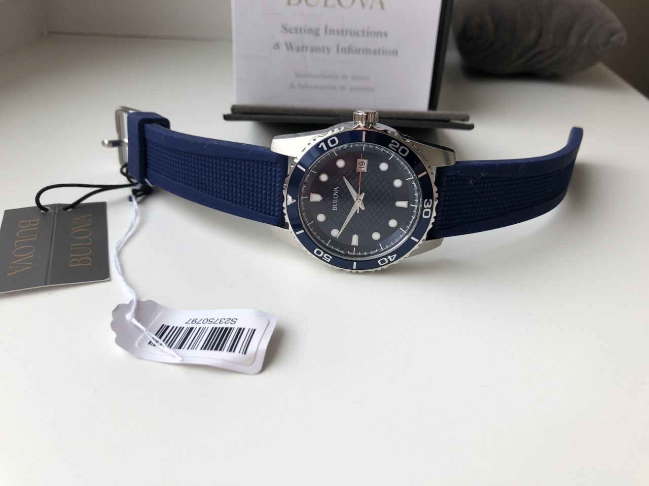 Bulova (Citizen corp) - отличный синие часы в дайверском стиле 43mm. За копейки!