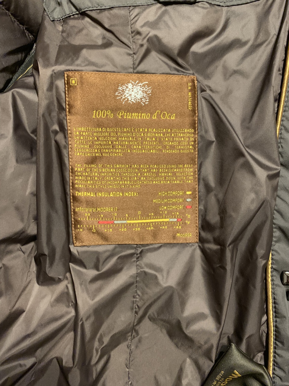 Продается новый зимний мужской простеганный двубортный пуховик итальянского бренда МООRER превосходного исполнения, плотная, не продуваемая ткань, размытого серо-коричневого цвета, логотип, воротник отложной, отделан кожей, застегивается на молнию с двойным ходом и пуговицы, фурнитура с логотипом бренда, вверху прорезной карман, наружные боковые прорезные карманы на кнопках, в одном из карманов прорезной потайной карман на молнии, внутренние карманы на молнии, внутри гусиный пух, состав: 100% полиамид, офисный вариант, закрывает линию пиджака, все бирки прилагаются, гарантированный 100 % оригинал, размер 54 (IT) , производство Италия.