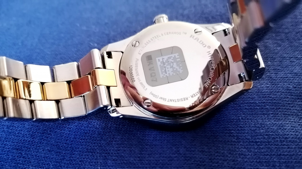 В продаже красивые и элегантные женские RADO HYPERCHROME. Сталь/Керамика/Титан. D = 32mm, кварцевый механизм. Керамические вставки цвета жёлтого золота. Витринный образец, есть несколько микроцарапок на застежке (даже полировать там не чего), в остальном идеал.