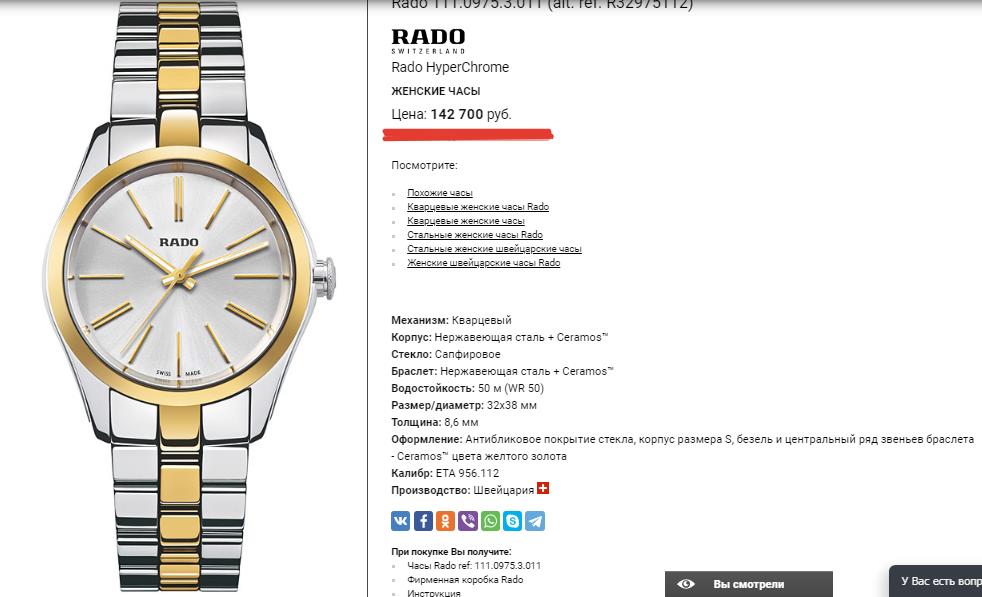 Элегантные женские часы RADO 32mm (витринный образец). - Часовой форум Watch.ru
