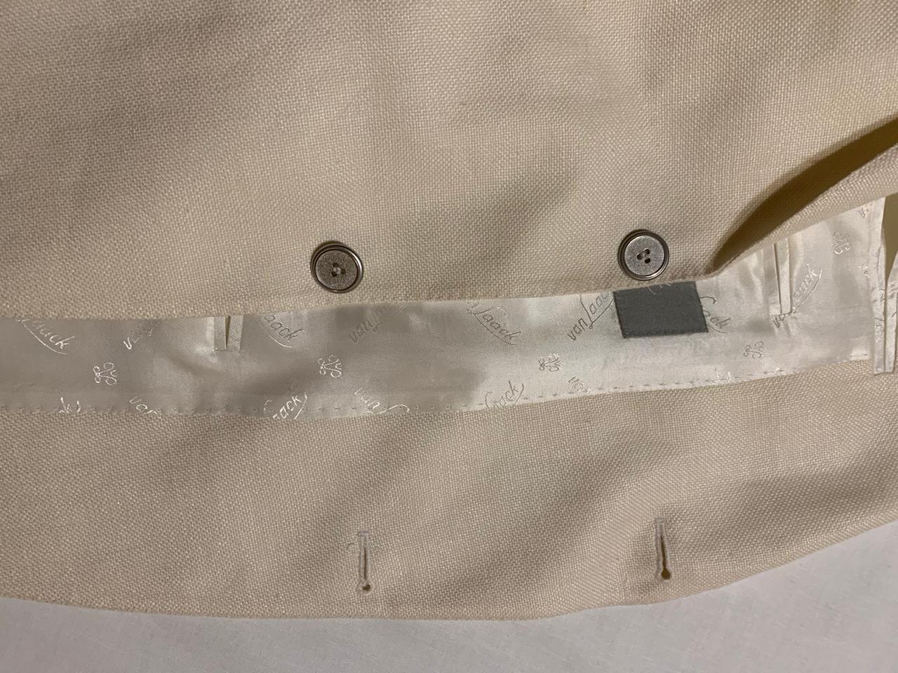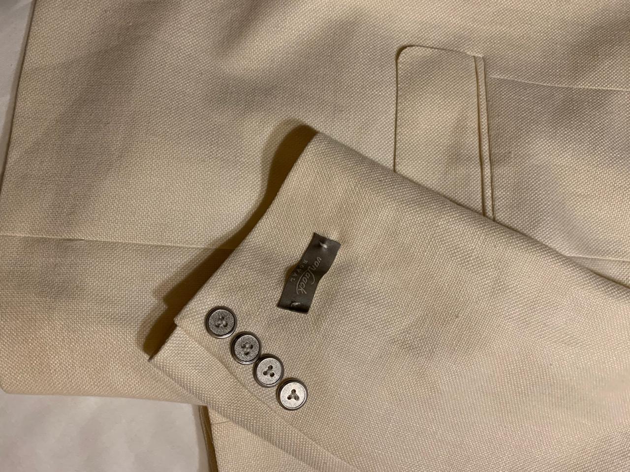 Продается новый стильный мужской пиджак бренда VAN LAACK превосходного исполнения с элементами ручной работы, ткань оригинального плетения, цвета cлоновой кости, воротник с лацканами, однобортная модель, пуговицы, накладные карманы, манжеты на пуговицах, два внутренних кармана, двойной разрез сзади, внутри на подкладке с логотипом бренда, состав : 42% шерсть, 55%лён, 3%шелк, материал фабрики Loro Piano, все бирки и запасная фурнитура прилагаются , гарантированный оригинал, размер 54(IT) , производство Италия.
