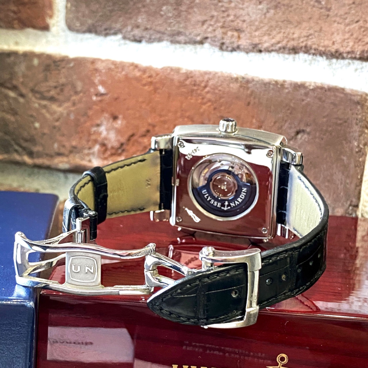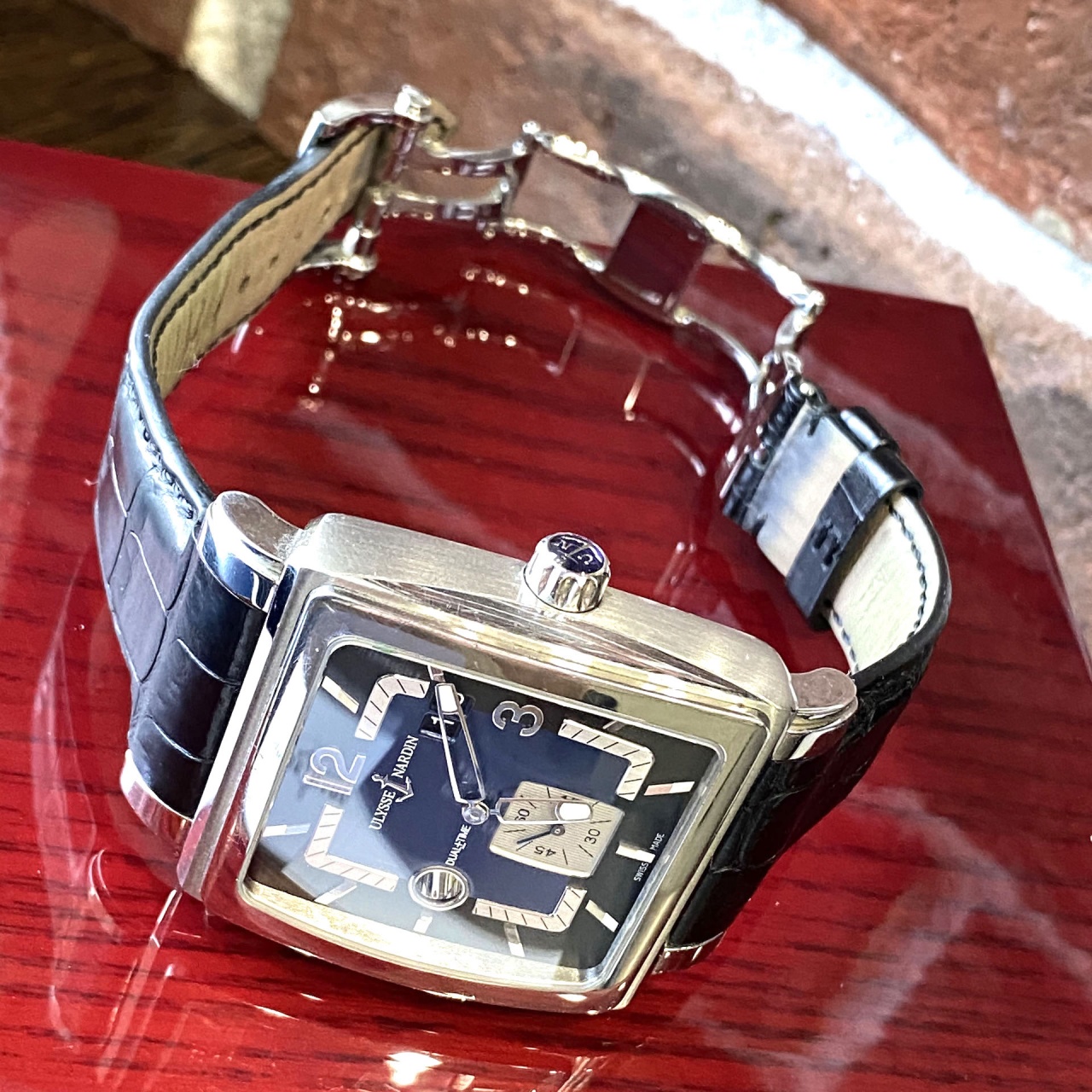 Референс - 243-92/632 Материал корпуса - Сталь Форма корпуса - Квадрат Размер корпуса - 42 мм Толщина корпуса - 12.2 мм Стекло - Сапфировое Тип калибра - Механика с автоподзаводом Функции - секунды, минуты, часы, дата, второй часовой пояс Браслет - Ремешок из кожи крокодила Цвет ремешка - Черный Водонепроницаемость - 50 м.