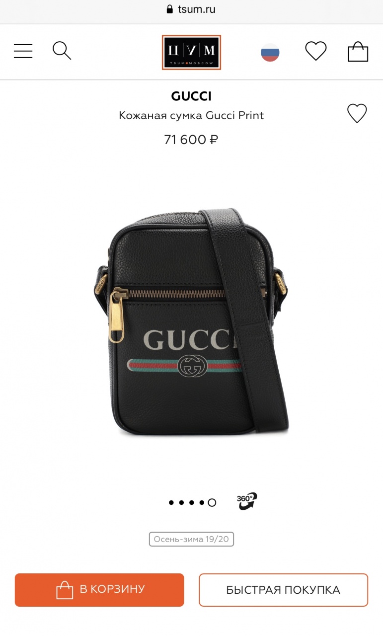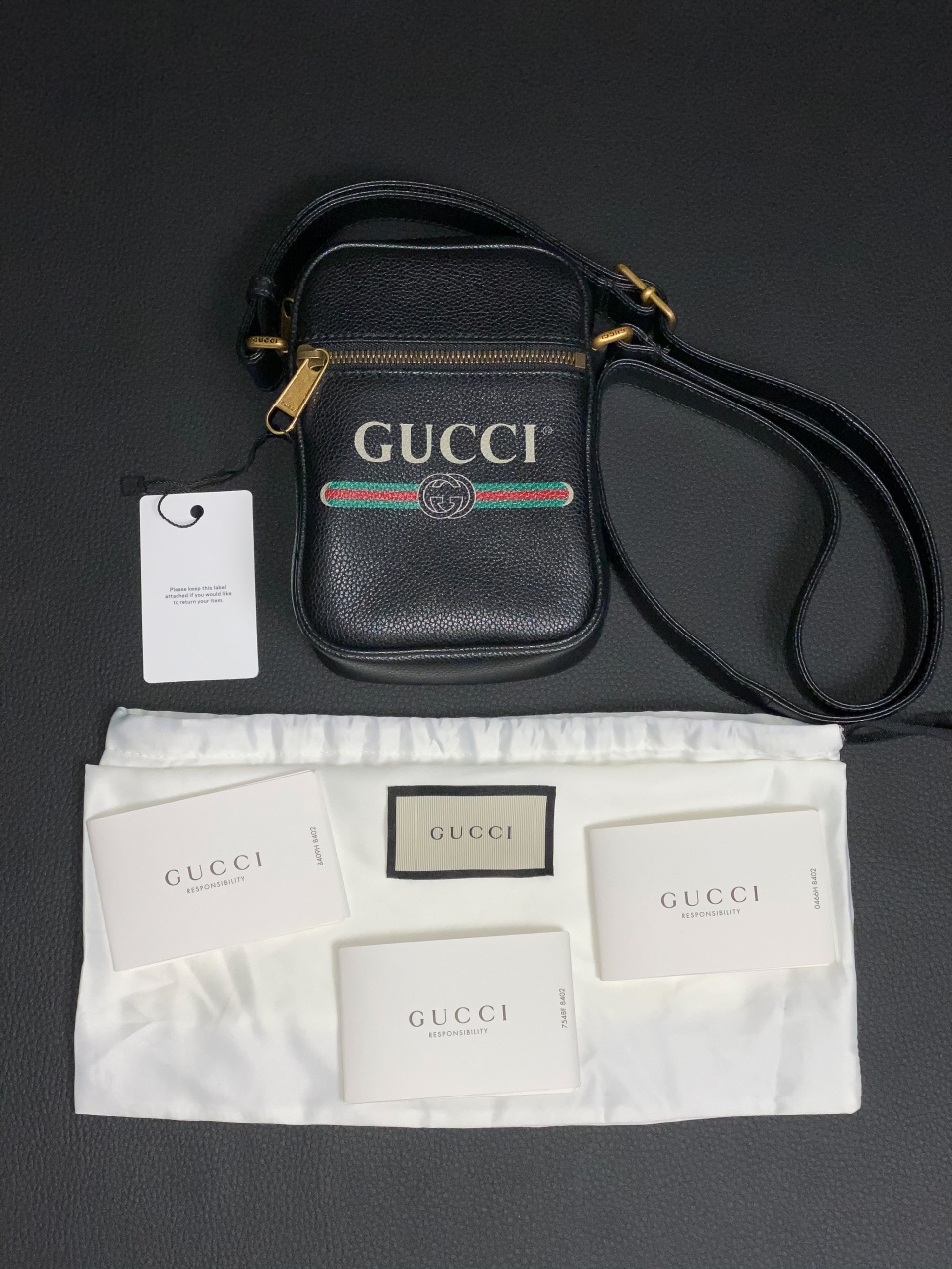 GUCCI Black Leather Gucci Print Shoulder Bag. Мужская сумка. Новая