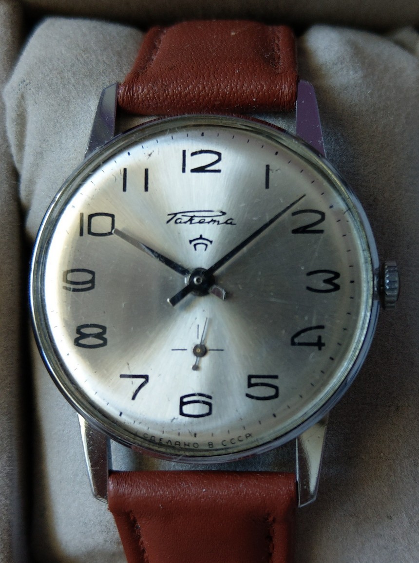 Кроме самого этого угловатого изображения марки, обратите внимание на надпись "Сделано в СССР". Стиль не характерен для кириллических циферблатов ПЧЗ.