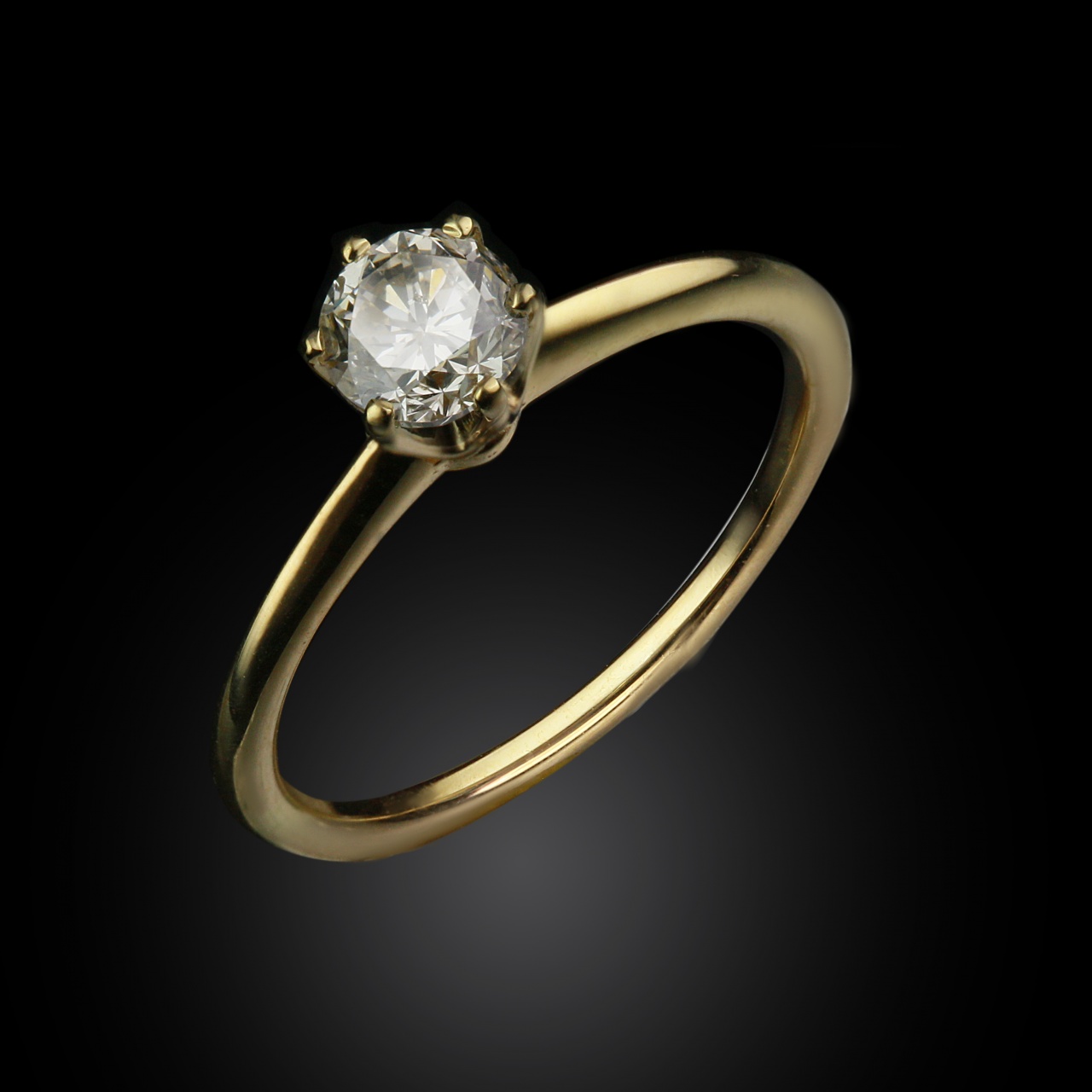 Кольцо из желтого золота с бриллиантом 0,52 карат (сертификат МГЦ)
