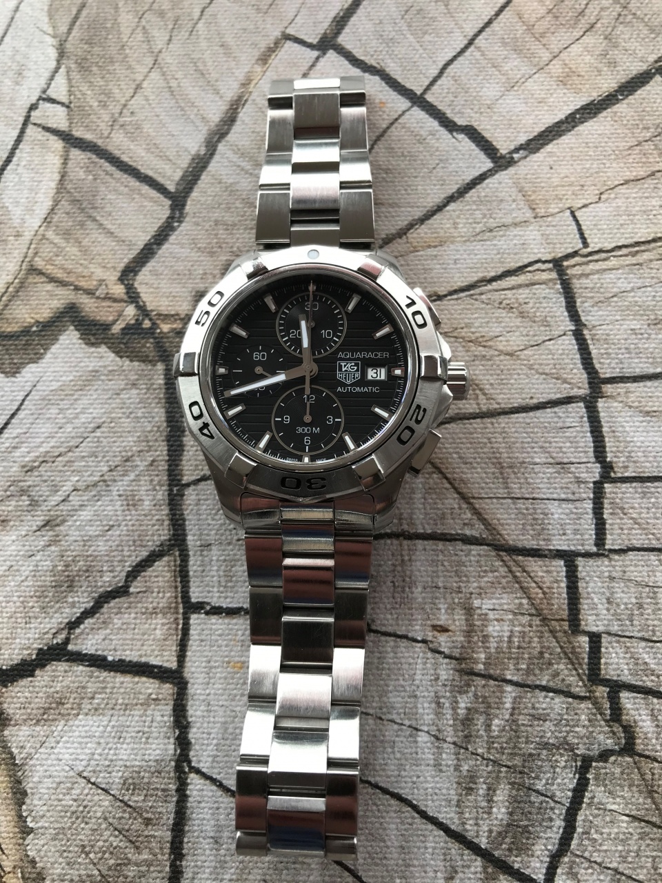 В наличии замечательные, мужские часы-дайвер TAG Heuer Aquaracer CAP2110.BA0833 в отличном состоянии. Полный комплект: часы, внешняя коробка, шкатулка, инструкция, гарантийная карта, доп. звенья, бирка.
