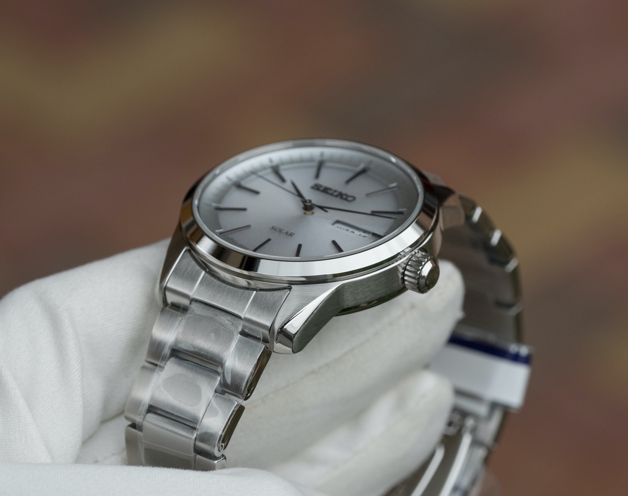 Светлый циферблат, тонированные стрелки, комфортный размер и вес, водозащита 100м