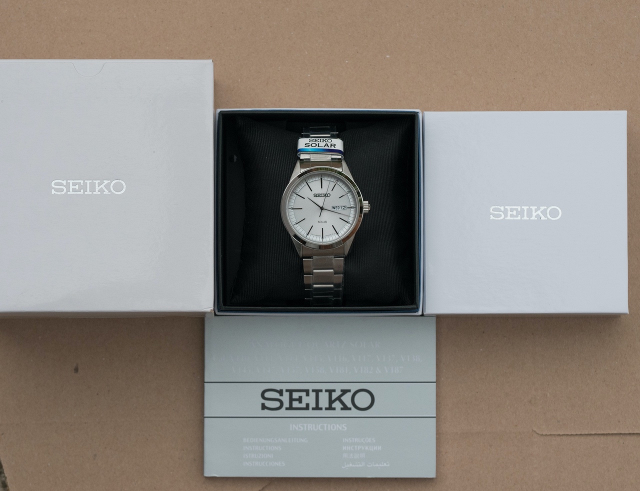 Универсальный трехстрелочник с днем недели и датой, питание от света - SOLAR
