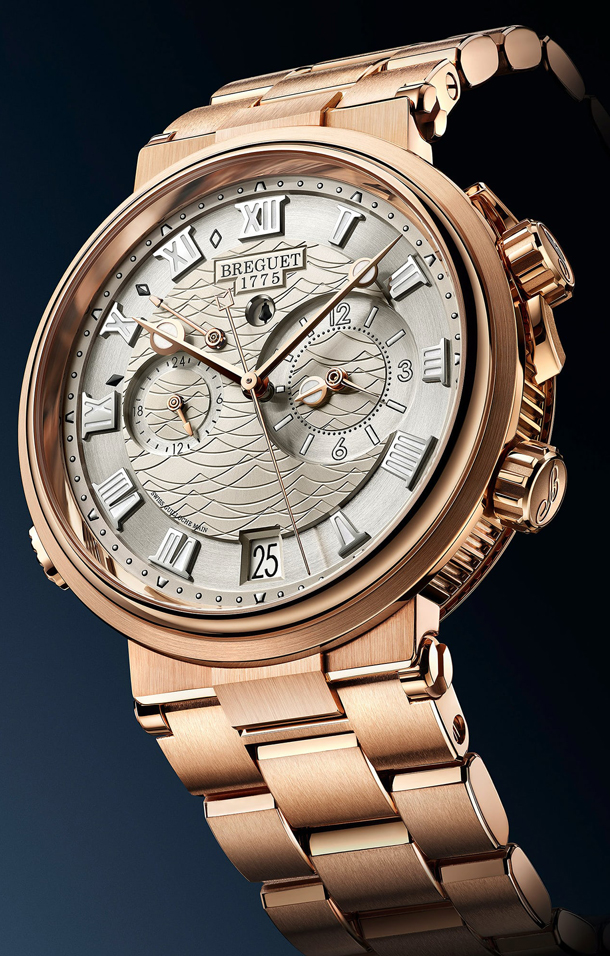 Хорошей новостью от Breguet о модели Marine Alarme Musicale стало то, что модели из розового и белого золота теперь можно носить и на браслетах. Ранее была доступна на браслете только титановая версия. Другие две поставлялись с кожаными ремешками и соответствующей золотой застежкой.