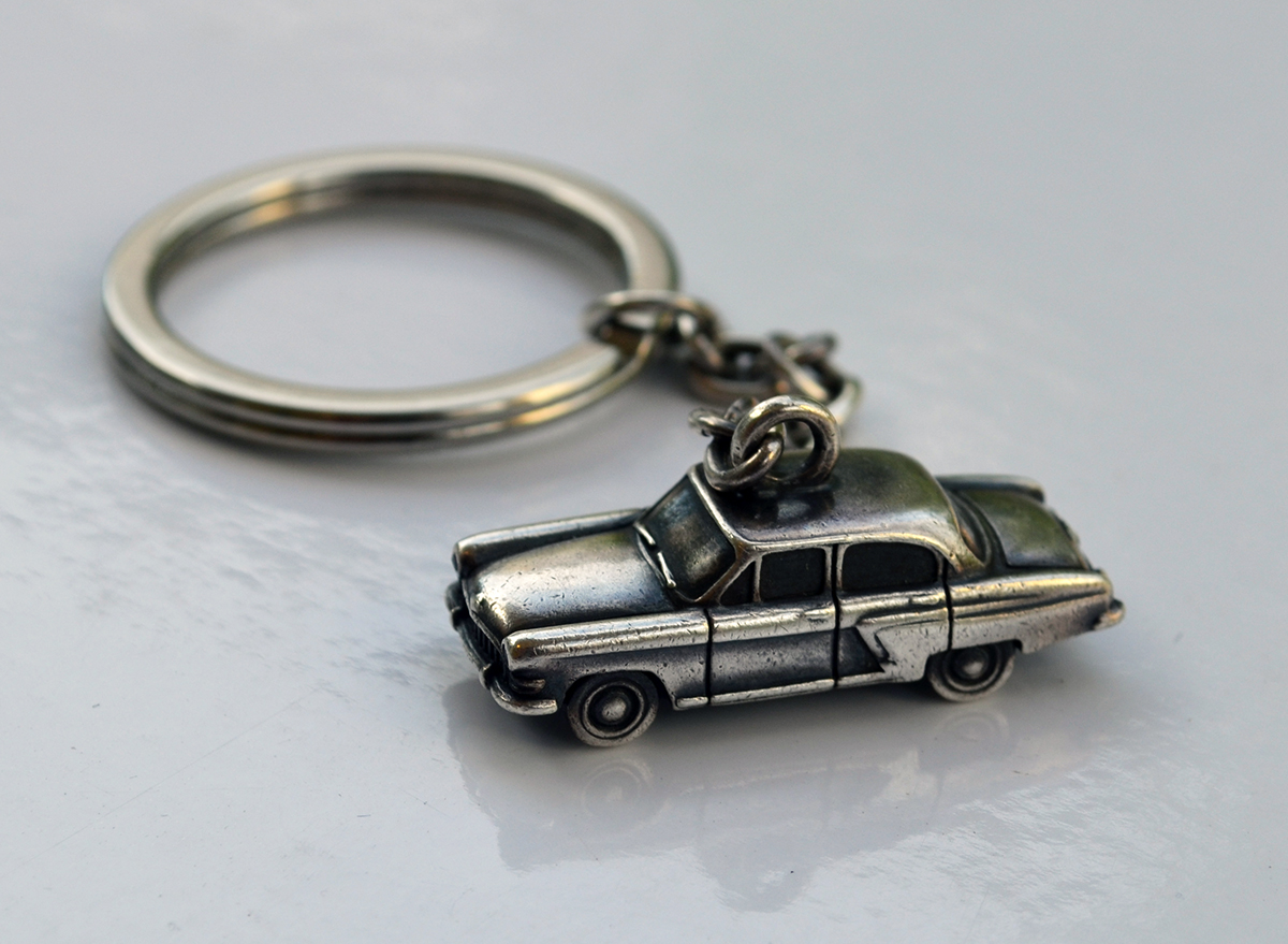 Брелок представляет собой многократно уменьшенную копию "ГАЗ-21" – мечты каждого простого советского гражданина. Машина со знаменитой фигуркой оленя на капоте была выпущена в 1956 г. знаменитым Горьковским автомобильным заводом. Этот поистине передовой автомобиль получил высшую награду на Всемирной выставке в Брюсселе в 1958 г.