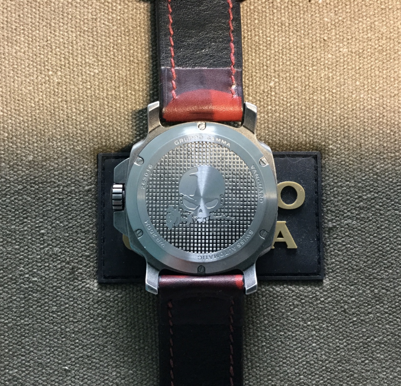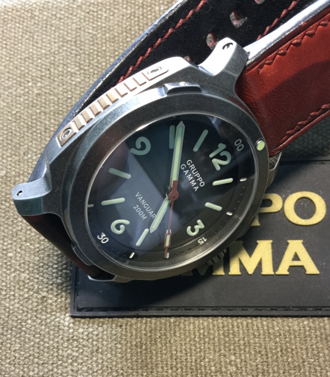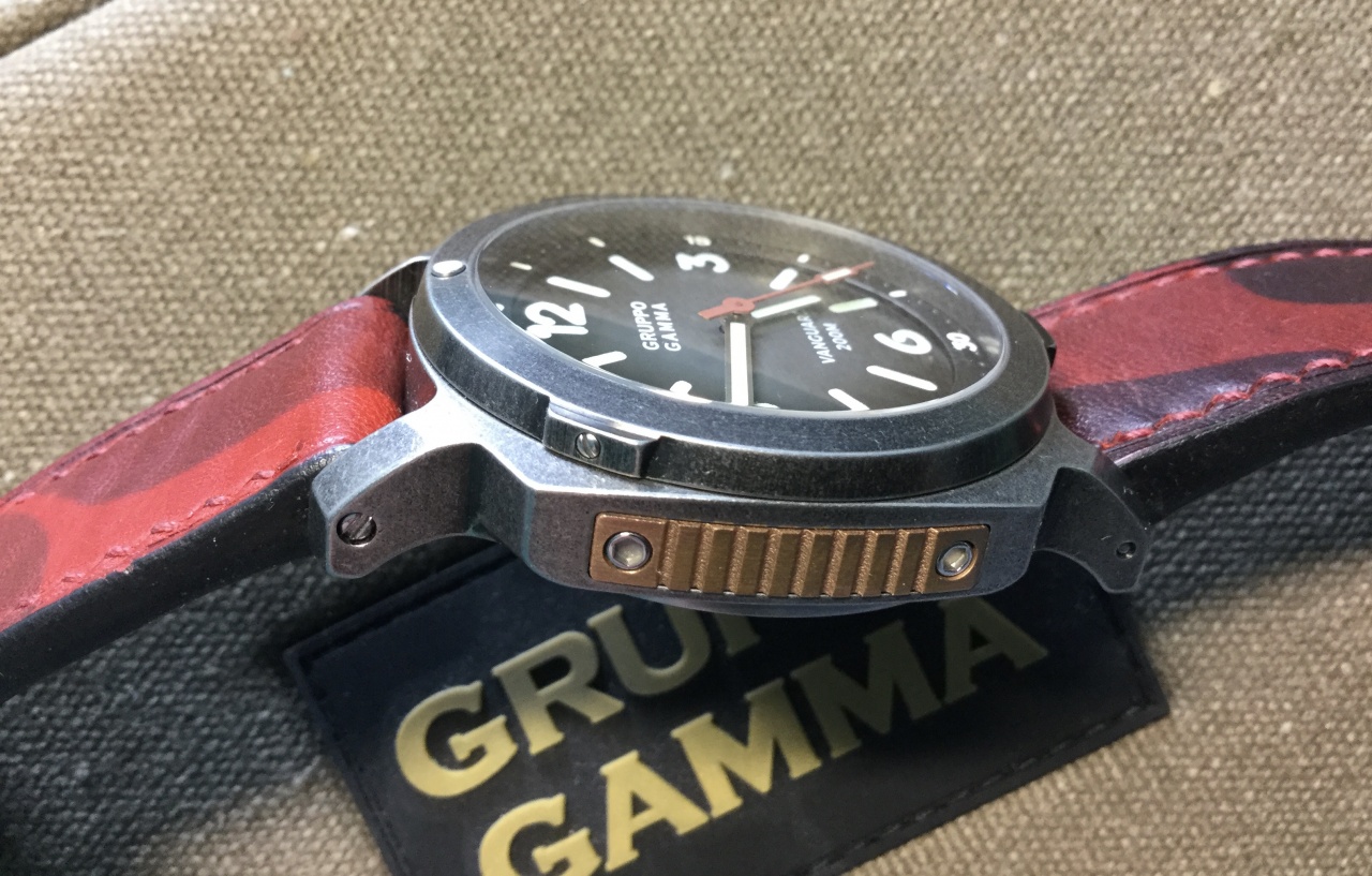 Модель Vanguard Aged steel AV-16 от компании Gruppo Gamma. Корпус этой модели выполнен из состаренной стали 316L, завинчивающаяся заводная головка, поворотный однонаправленный безель на 120 щелчков, размер корпуса 44 мм, расстояние от дужек до дужек 54 мм., толщина корпуса 13,5 мм. Швейцарский автоматический механизм ETA 2824-2, 28800, запас хода 38 часов, двойное купольное сапфировое стекло с антибликовым покрытием, водозащита 200 м. (20 АТМ), стрелки и метки циферблата покрыты ярким швейцарским составом C3 SuperLuminova, вес 140 гр. В комплекте часы, футляр, два новых оригинальных ремешка с баклями из состаренной стали, отвертка. Часы в отличном состоянии покупались в январе 2019 года у официального дилера Gruppo Gamma.