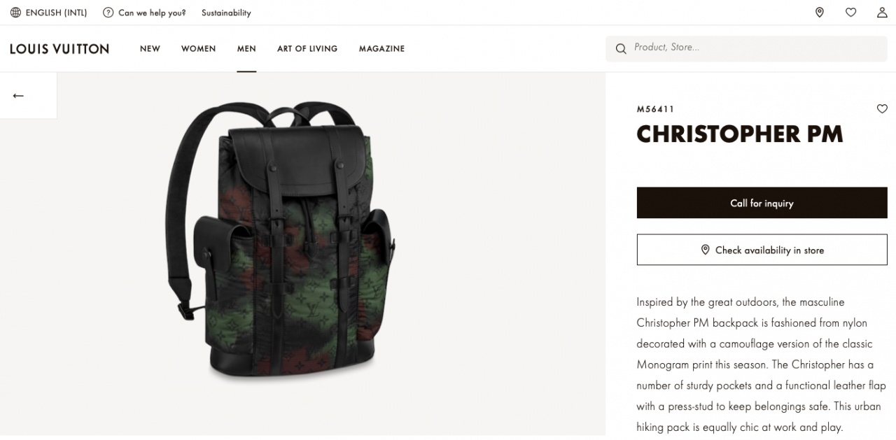 "Мужской рюкзак Christopher PM вдохновлен романтикой путешествий и туристических походов. В новом воплощении рюкзак Christopher изготовлен из нейлона, украшенного в этом сезоне камуфляжной версией классического принта Monogram. В модели Christopher есть несколько прочных карманов и функциональный кожаный клапан с кнопкой для сохранности вещей. Стильную и необычную модель оценят деловые люди, чей образ жизни гармонично сочетает работу и активный отдых. Этот рюкзак одинаково шикарен как в офисе, так и в окружении дикой природы."