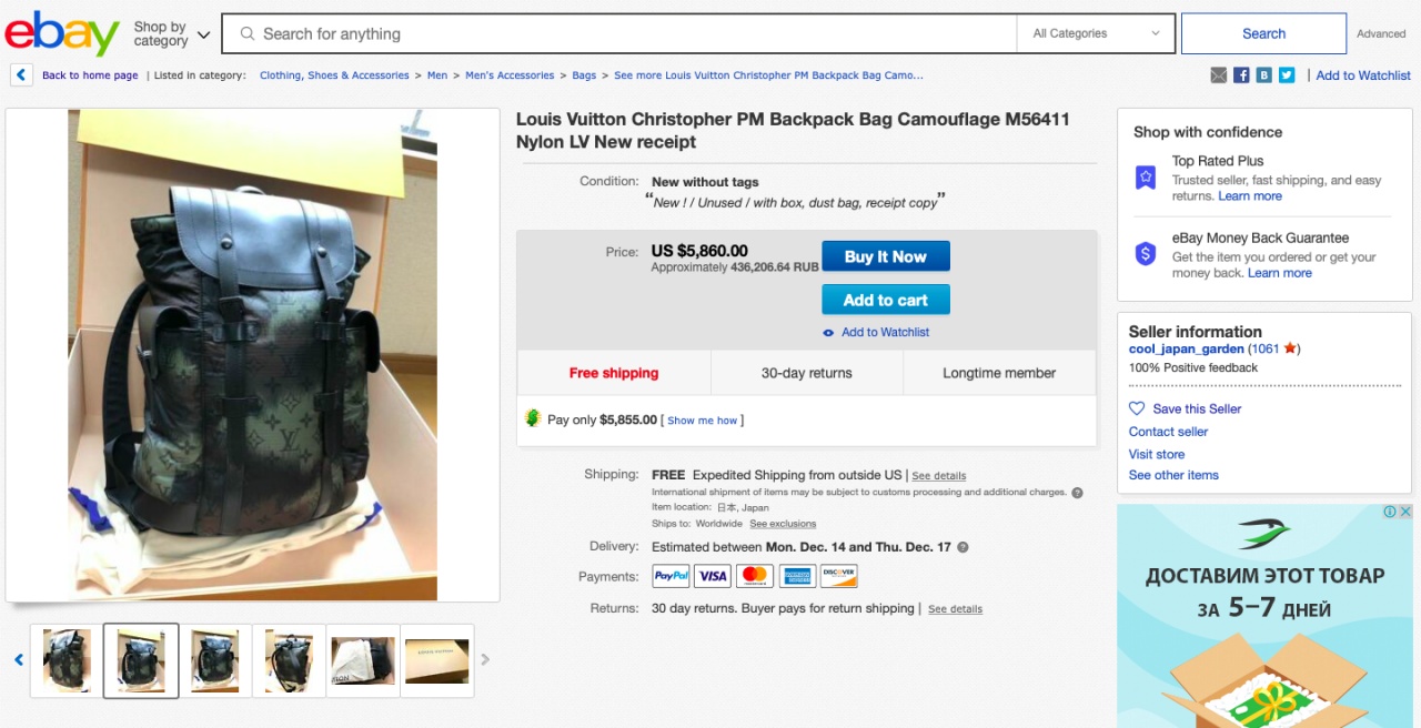Стоимость в Louis Vuitton: 270.000 руб. но это ничего не значит, его нет в наличии. Реальная цена сейчас по которой его можно купить прямо сегодня - 5500-6500 евро (487.000-588.000 руб).