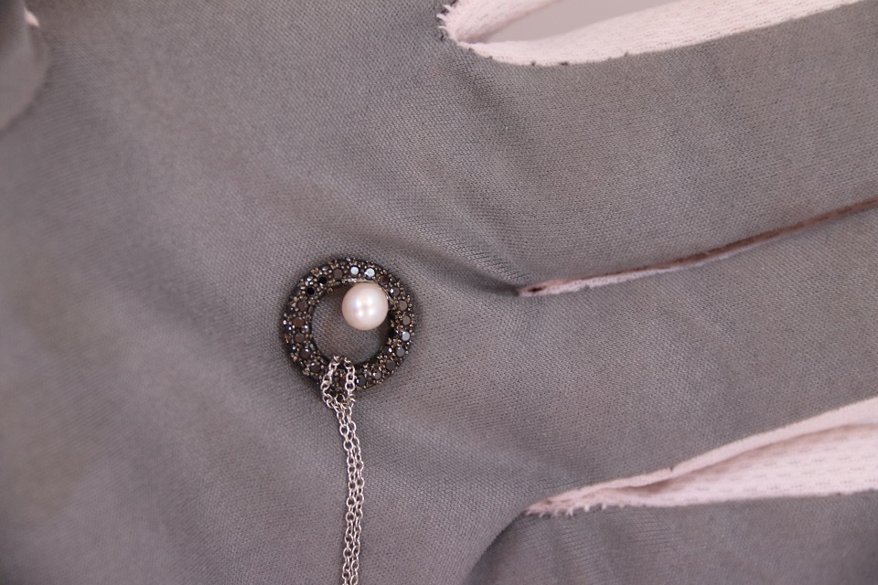 Неспешно продается новый женский золотой кулон / подвеска с черными бриллиантами и жемчужиной на золотой цепочке