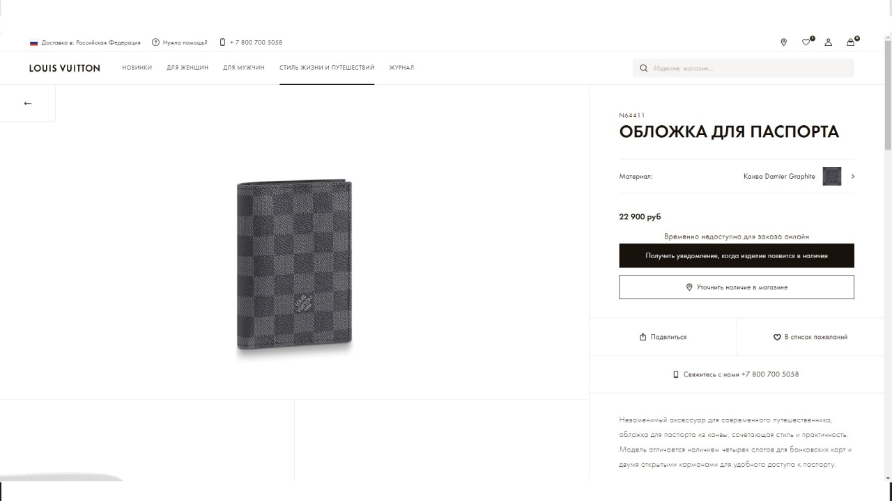 ОБЛОЖКА ДЛЯ ПАСПОРТА LOUIS VUITTON Damier Graphite
