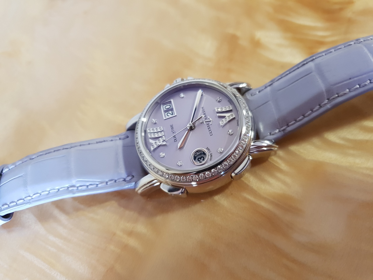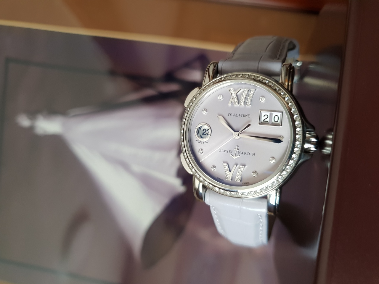 Божественной красоты часы, роскошный и ультраженственный #ulyssenardin , конечно же весь в бриллиантах, самый усеянный камнями вариант, ритэйл часов был 13700$ на сегодня это милион сто тысяч блин рублей). Корпус 37мм, гмт и большая дата, фото не передадут то, как переливается циферблат, очень живые часы, очень утонченные и аристократичные.