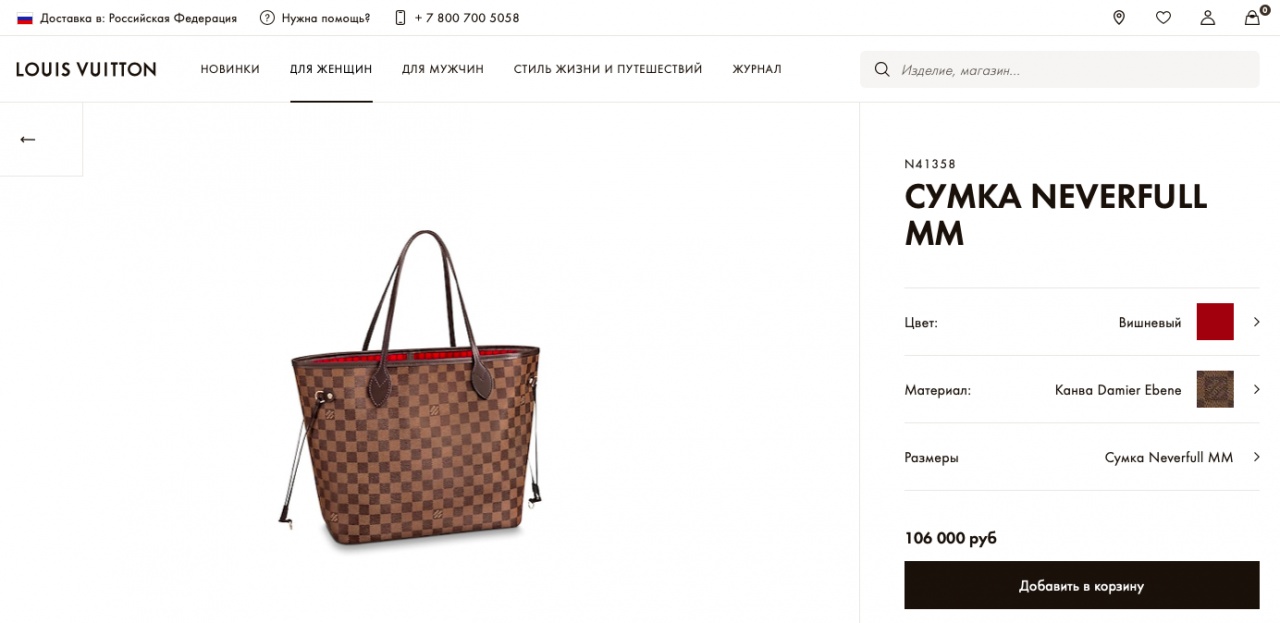 Стоимость в Louis Vuitton: 106.000 руб.