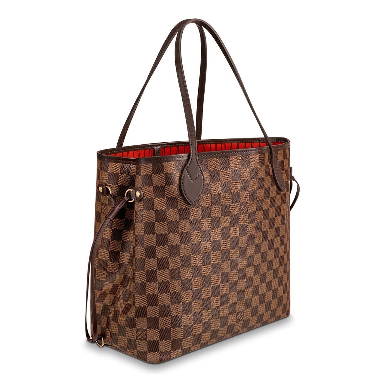 "Louis Vuitton представляет обновленную версию культовой модели сумки Neverfull. Загляните в нее, чтобы оценить изысканность ее исполнения. Новый дизайн интерьера удивляет красочной подкладкой из текстиля и деталями, вдохновленными наследием и архивами Дома. Элегантная модель из канвы Damier Ebene украшена ручками и отделкой из гладкой яловой кожи. Декоративные завязки позволяют менять форму и размер сумки. А съемный клатч на молнии можно носить отдельно или использовать как дополнительный карман. Варианты подкладки в ярких оттенках добавляют цветовой акцент вневременной классике."