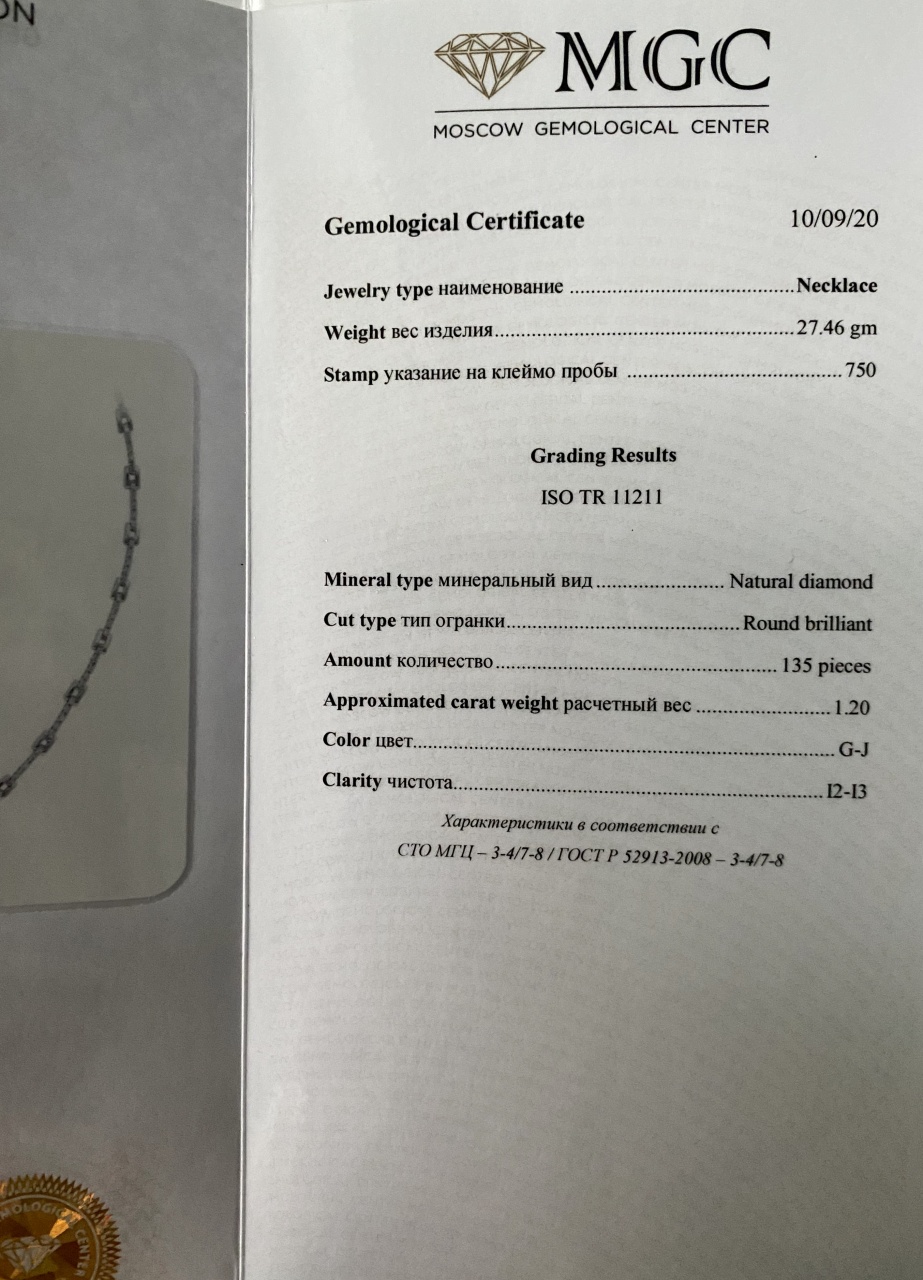 НОВОЕ КОЛЬЕ С 135 БРИЛЛИАНТАМИ, СЕРТИФИКАТ, ТОРГ /ОТПРАВКА