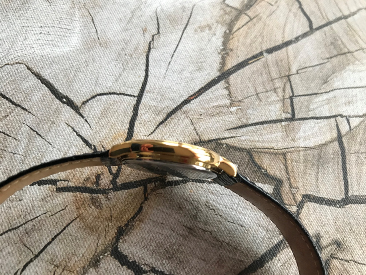 Циферблат: Позолоченный, гильоше с эффектом «Солнечные лучи», накладные полозоченные стрелки и накладные метки