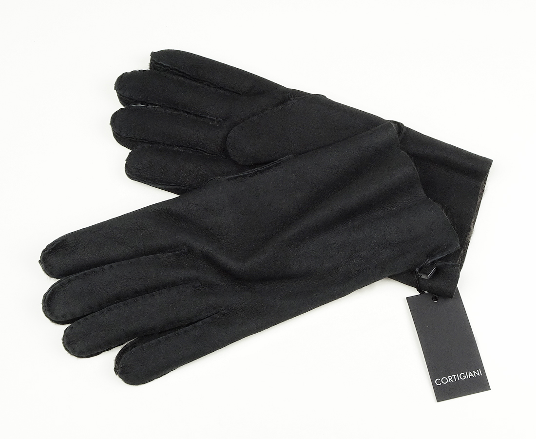 CORTIGIANI мужские перчатки, редкое исполнение: ДУБЛЕНКА! Кожа + мех, р.L!
