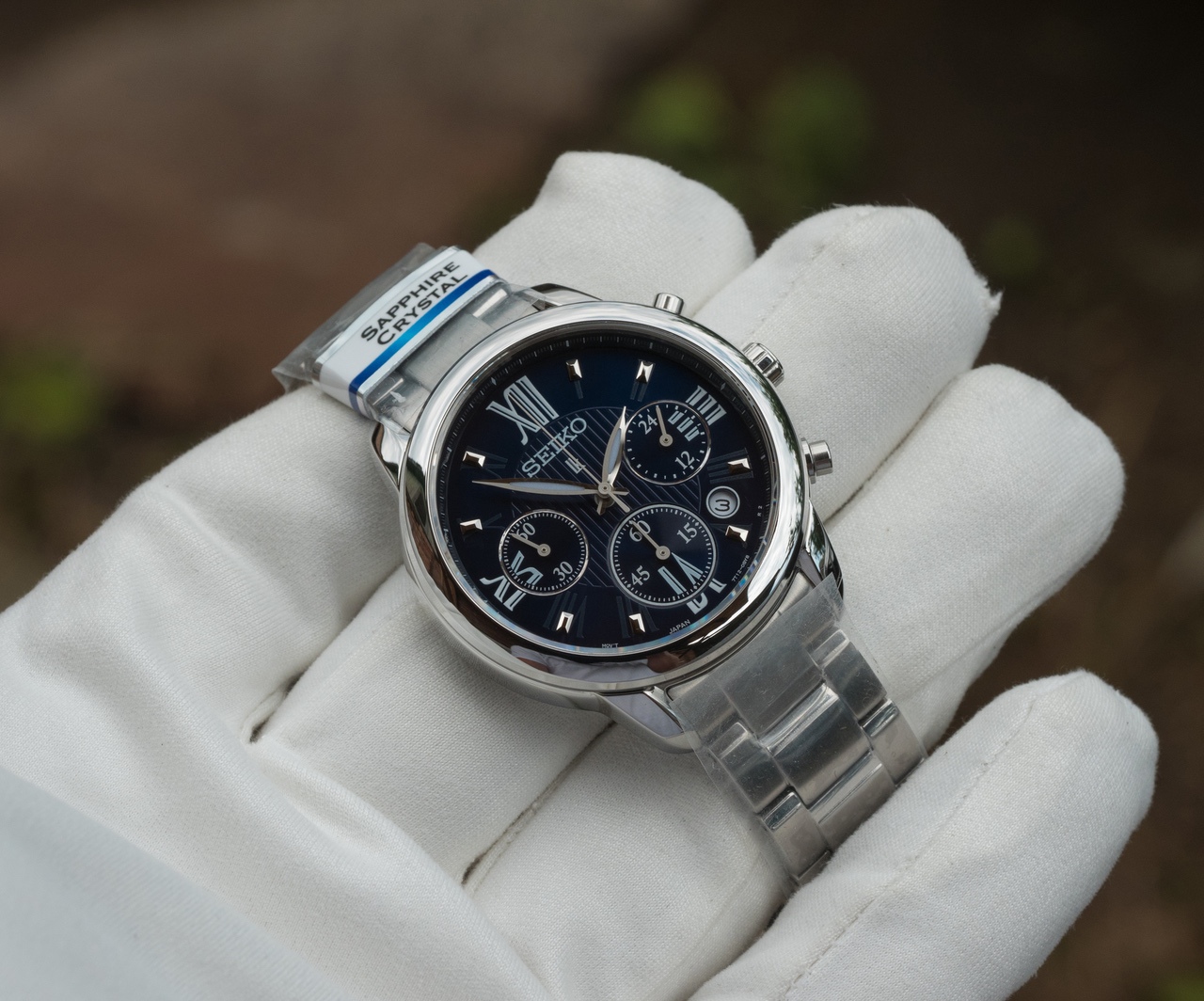 Очень красивый синий циферблат, качественная отделка, комфортный размер