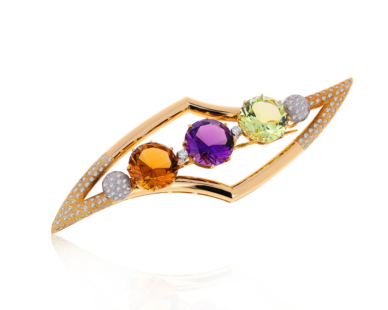 Богатая золотая брошь с хризолитом 7.45ct