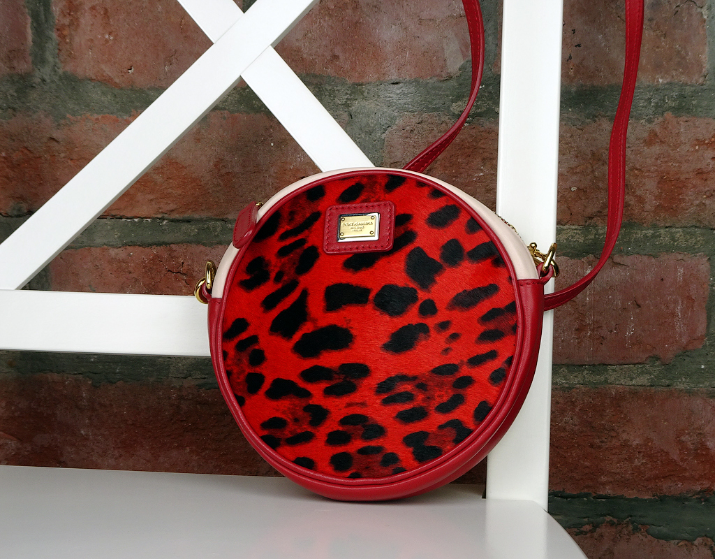 Более того - сторона сумки, выполненная из меха, украшена фирменным леопардовым узором Dolce & Gabbana в темно-красном цвете. Узнаваемый стиль марки, узор благодаря фактуре меха красиво переливается на свету.