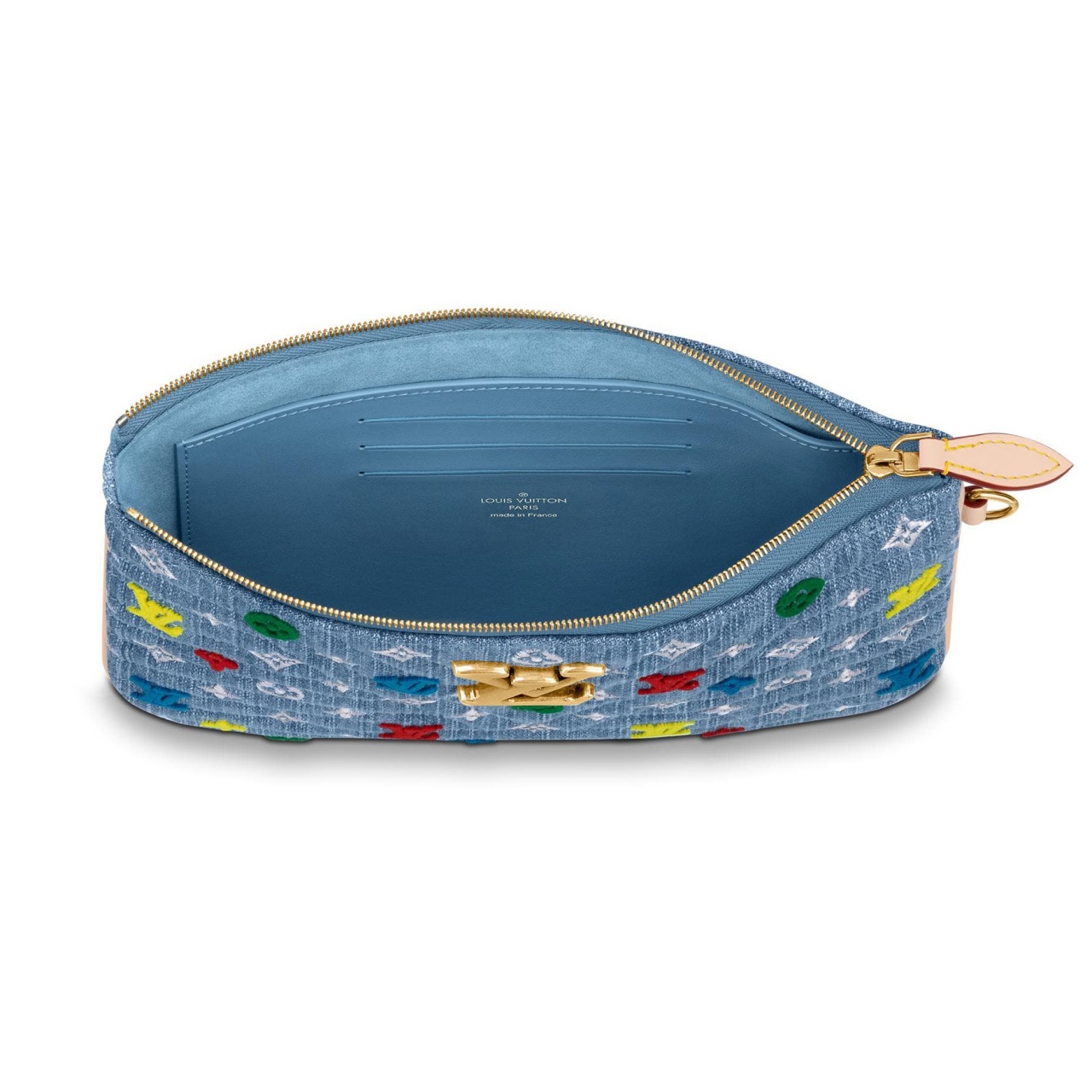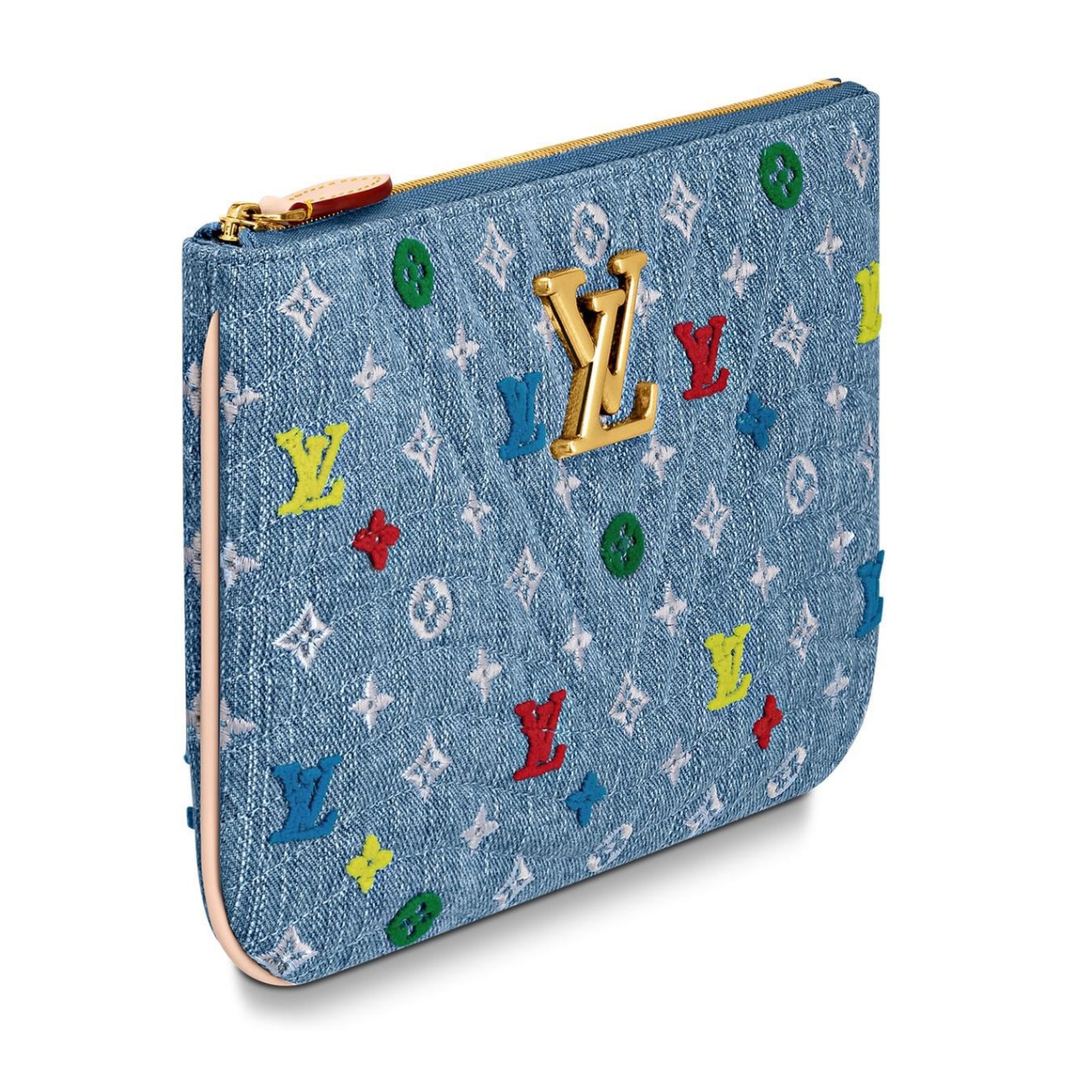 Главная фишка этого клатча: вместо кожи, здесь основной материал это легендарный деним, который после нескольких лет отсутствия, LV снова включил в изделия новых коллекций.