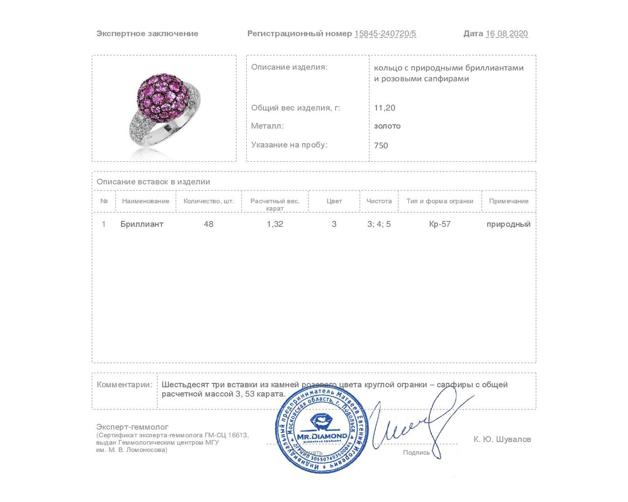 Достойное золотое кольцо с розовыми сапфирами 3.53ct