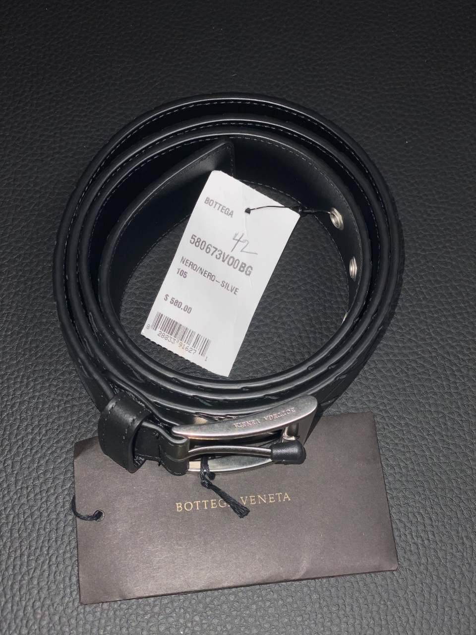 BOTTEGA VENETA Black Leather Belt 105cm. Мужской ремень. Новый.