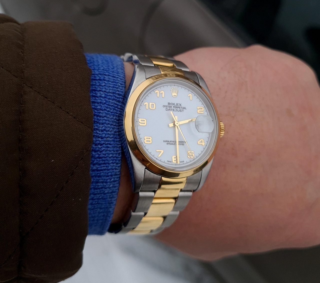 Часы невероятной красоты и магического притяжения. Вечный @datejust в кузове 36мм. Несмотря на небольшой размер в цифрах, часы смотрятся среднеразмерными, на фото у меня на запястье в 18.5см.
