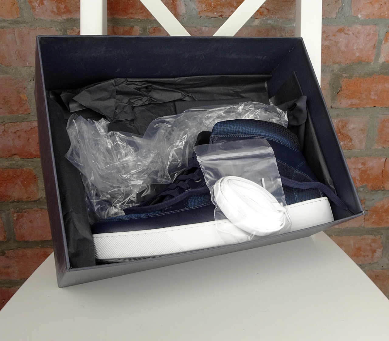Приятный бонус: в комплекте две пары шнурков в разных цветах - синие и белые. Можно менять по настроению.