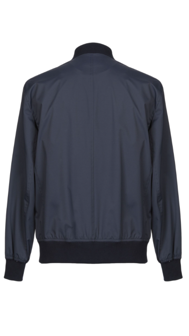 Бомбер выполнен из современной водонепроницаемой нейлоновой ткани насыщенного тёмно-синего цвета.Традиционный фирменный крой Brunello Cucinelli (прямой силуэт,невысокий воротник-стойка,длинные рукава) придаёт модели изысканный характер и элегантность.Куртка застёгивается на прочную металлическую молнию с двумя крупными брендированными бегунками контрастного серебристого цвета.Прорезные карманы по бокам также имеют застёжку на молнию.Нижняя кромка,манжеты втачных рукавов обрамлены хлопковой трикотажной резинкой в тон изделию.Бежевая подкладка с фирменными нашивками бренда,внутренние карманы с застёжкой на пуговицу с названием знаменитой марки.